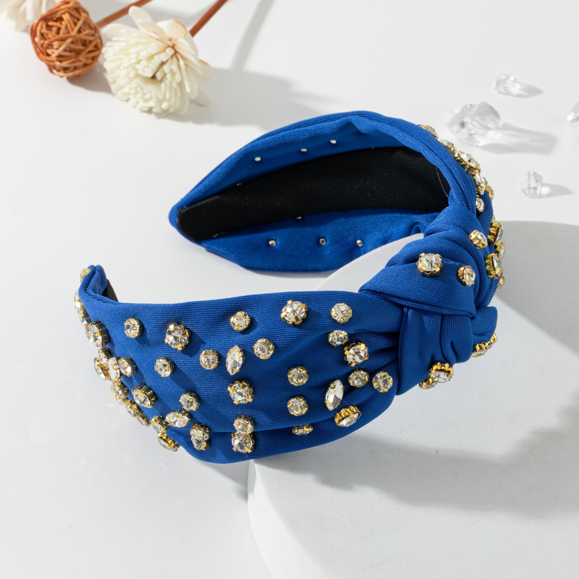 Details: Rhinestone Knotted Headbands for Women, Crystal Beaded Jeweled Headbands, Fashion Hairbands Hair Accessories (Darkblue)
