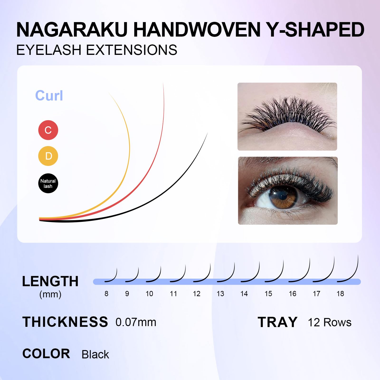 - LIGHTWEIGHT & SOFT:The Y lash fans are made of NAGARAKU by the exclusive researched and developed material, very soft and light, which is very similar to natural eyelashes and comfortable for professional eyelash extensions.
