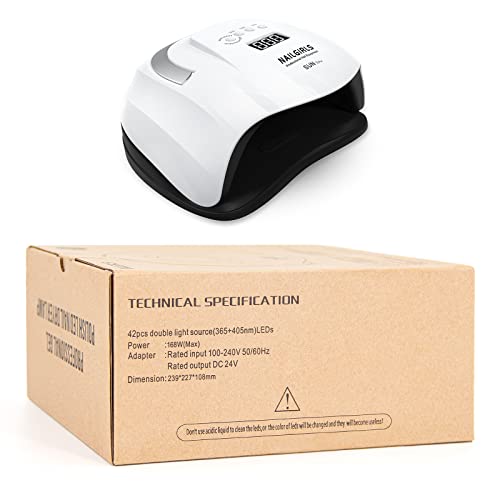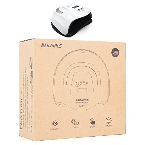 NAILGIRLS UV LED Nail Lamp,168W Fast Curing LED UV Light for Gel Nails with 4 Timer Setting Auto Sensor,Nail Dryer for Fingernail and Toenail,Salon Home Nail Art