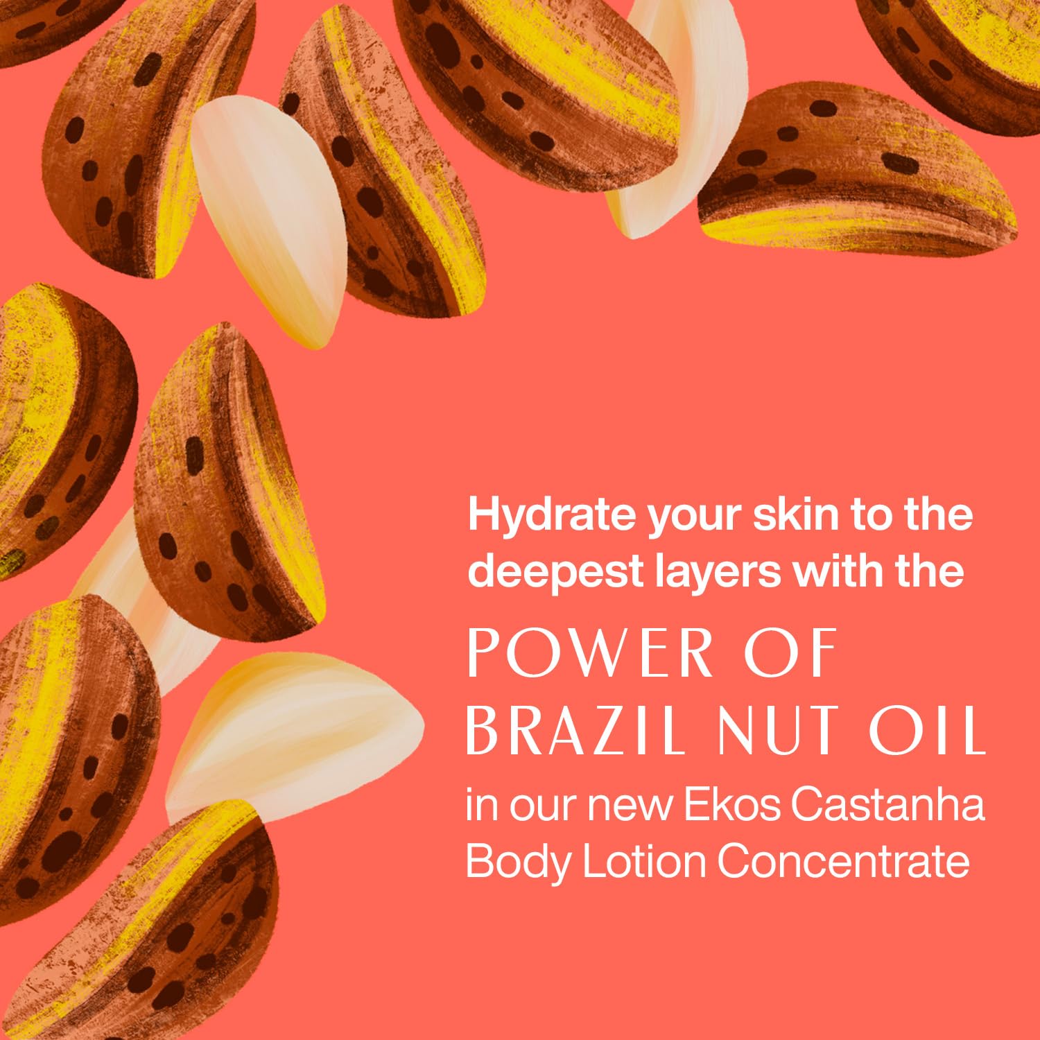 - Meet Ekos Castanha - This moisture rich body lotion helps to replenish and deeply nourish skin while maintaining the skin's natural moisture barrier. Delicately scented with a light creamy fragrance inspired by Castanha (Brazil nut) with a warm touch of wood and amber notes.