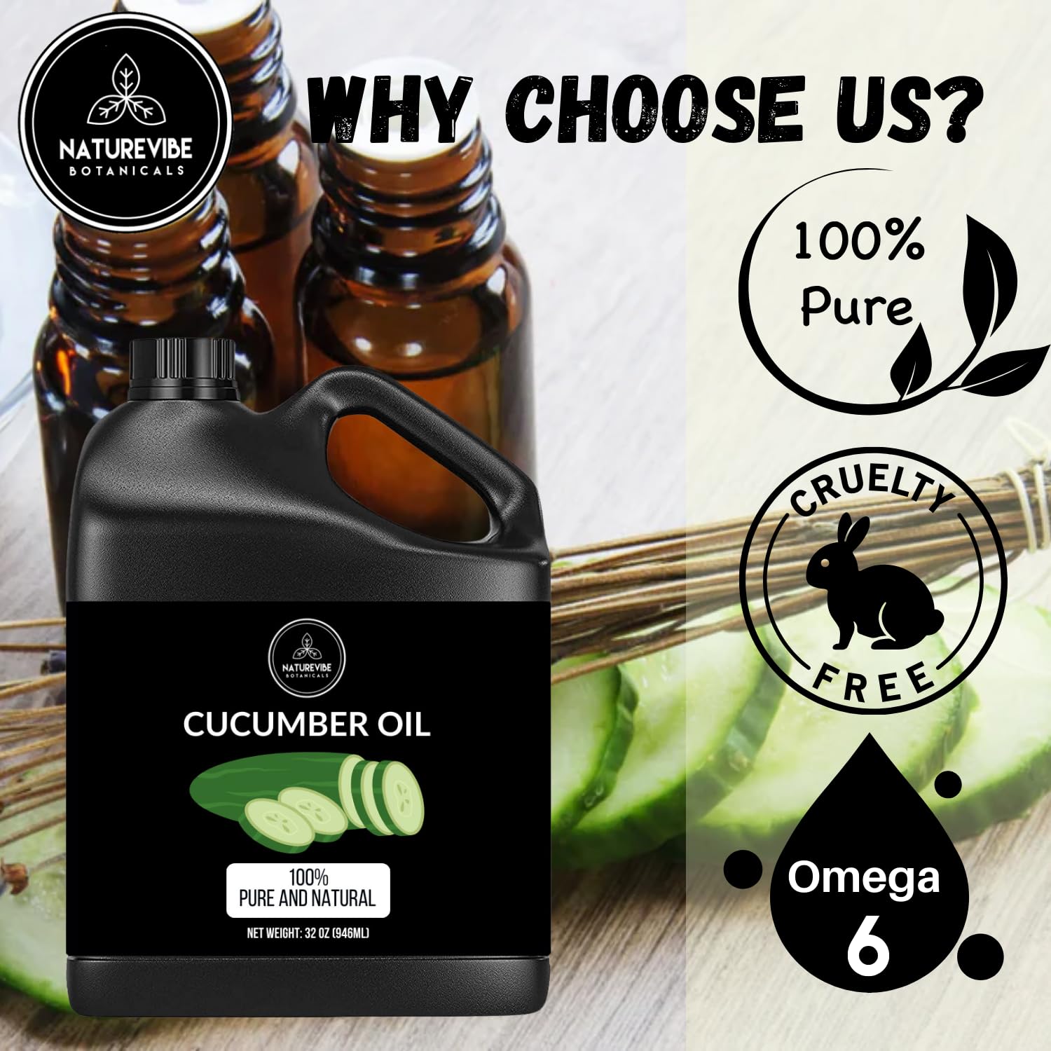 - ✅Cucumber Seed Oil 32 Ounces by Naturevibe Botanicals | Cold Pressed 100% Pure & Natural Carrier Oil | Perfect for Facial Care & Soothing Massages | Non Greasy Face & Body Moisturiser (946 ml)