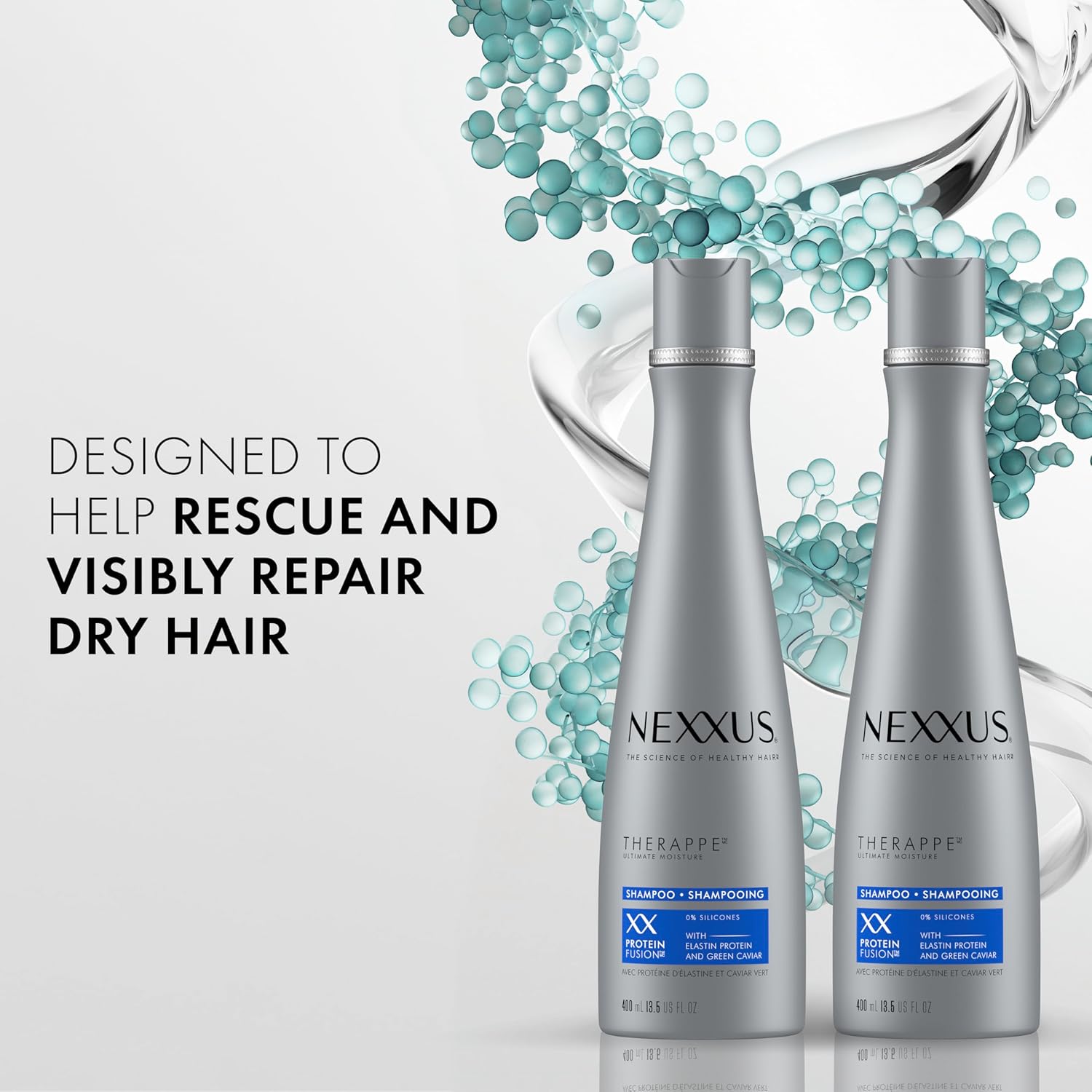 Nexxus Therappe Shampoo for Dry Hair - Ultimate Moisture, Silicone-Free, 2 Count (13.5 oz Each)