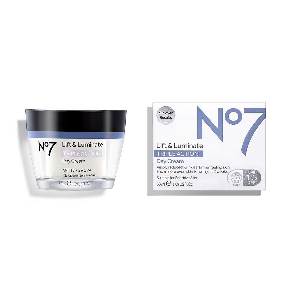 No7 Lift & Luminate Triple Action Day Cream SPF 30 - Broad Spectrum Anti Aging Face Cream - Hydrating Hibiscus Peptides & Hyaluronic Acid + Brightening Emblica & Vitamin C (50ml)