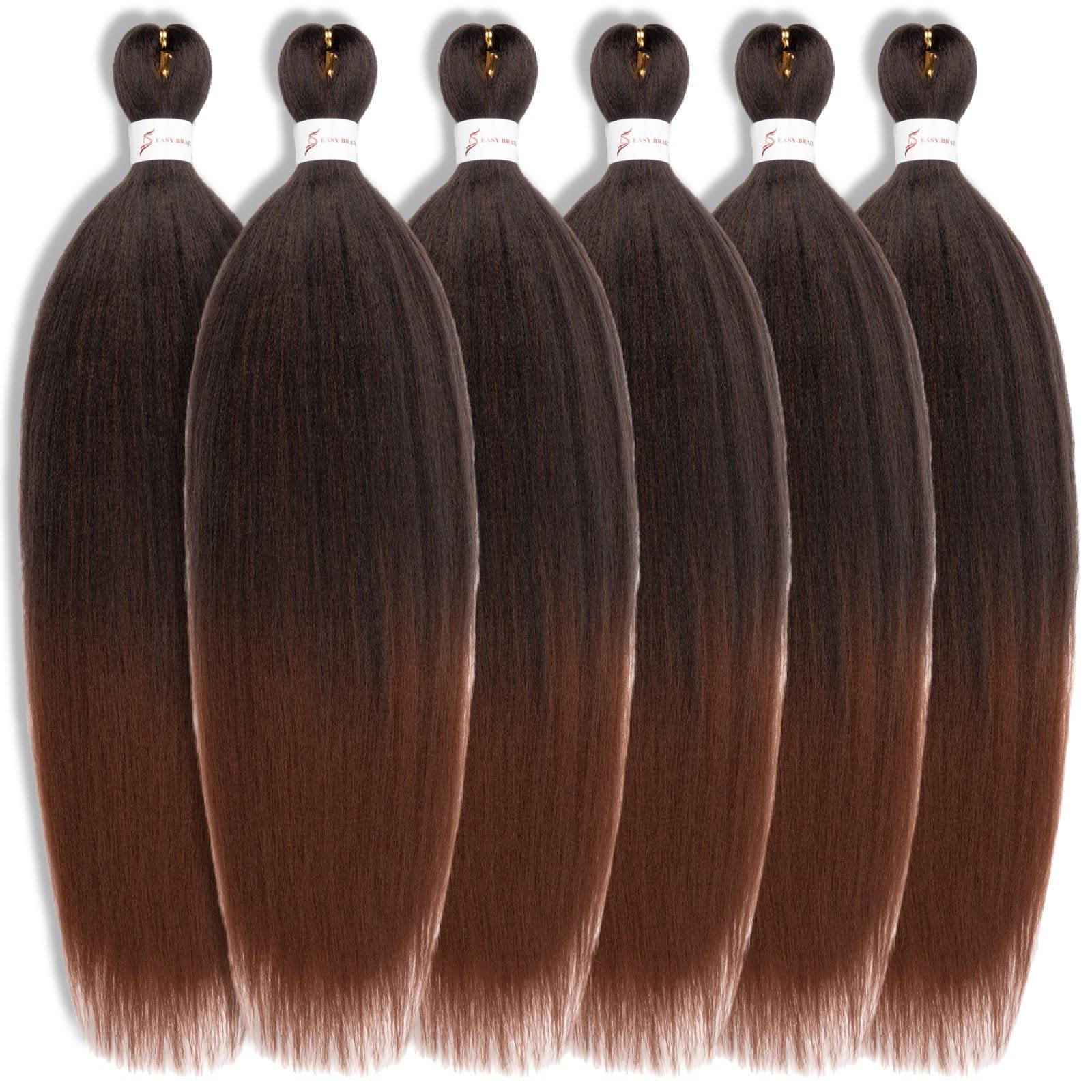Ombre Braiding Hair,24 Inch Ombre Natural Black To Brown 6 Packs Hair Extensions Professional Synthetic Braid Hair Crochet Braids, Soft Yaki Texture, Hot Water Setting (24Inch,T1B/30#).