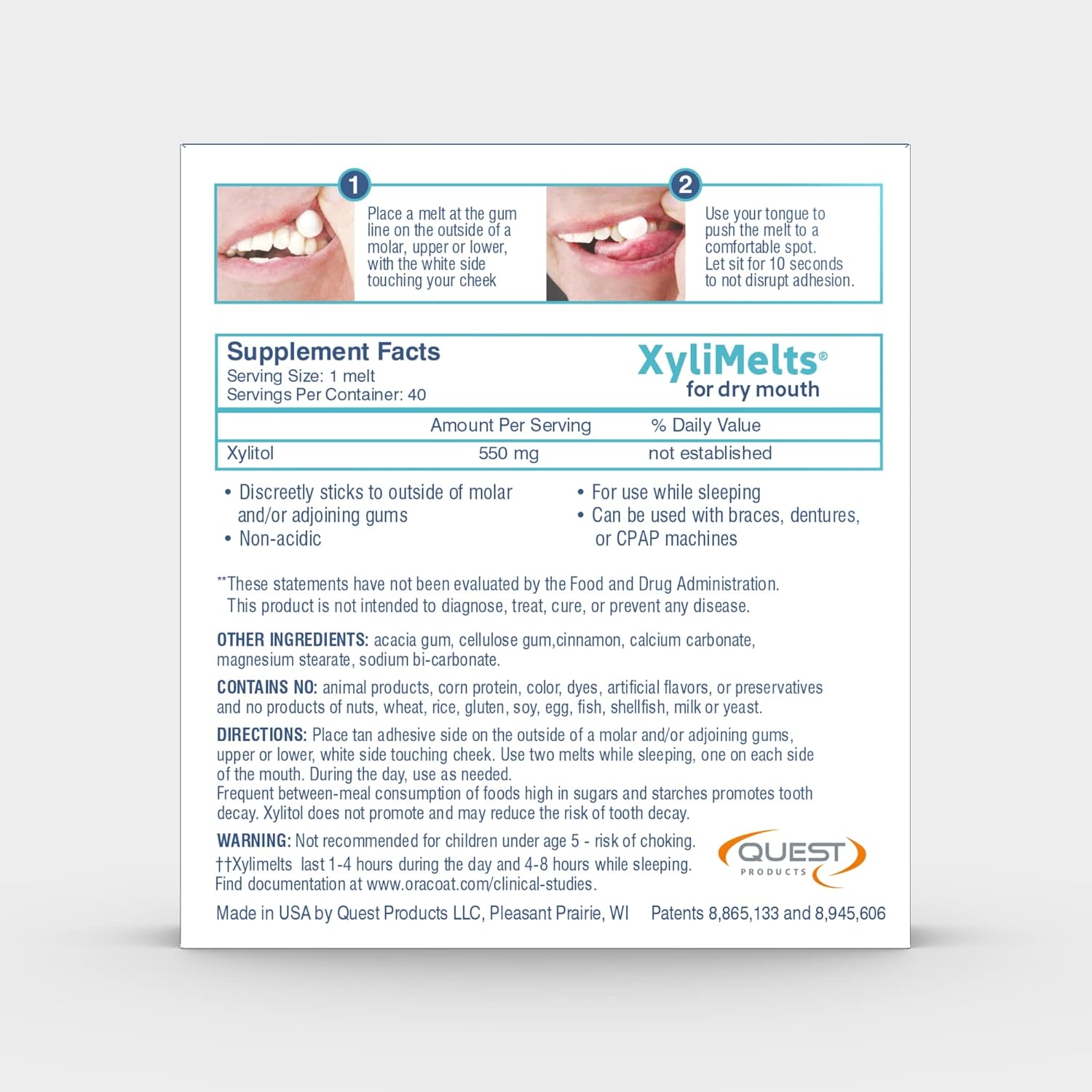 - NON-ACIDIC: OraCoat XyliMelts for dry mouth have a safe pH of 8, giving you effective dry mouth relief without harming your teeth.