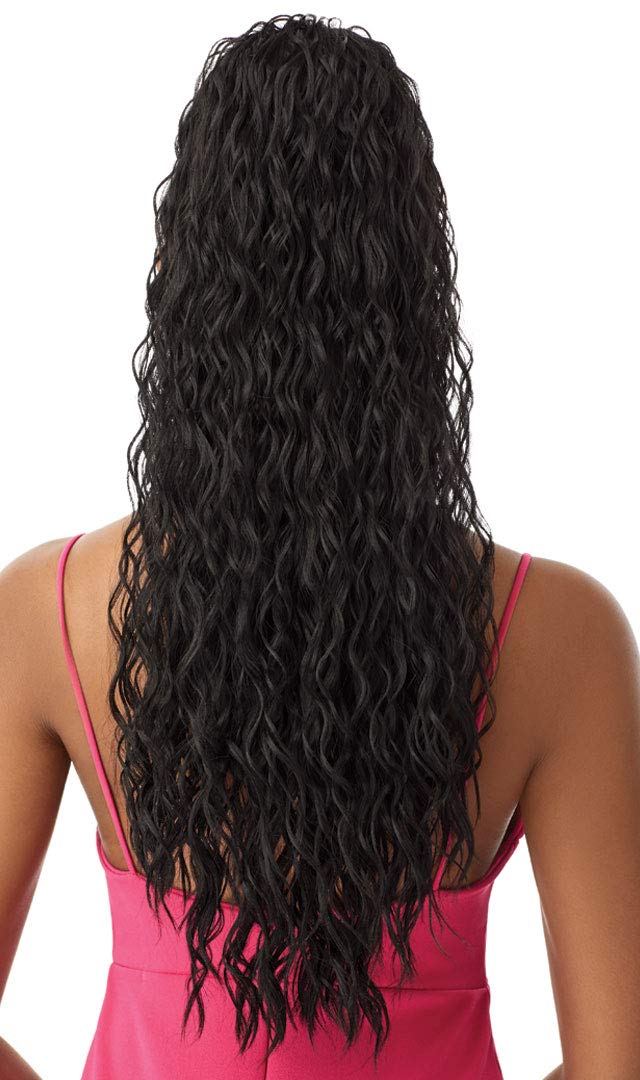 Details: Outre PRETTY QUICK DRAWSTRING PONY Long Curly Wave Ponytail Premium Synthetic Heat Resistant Secure Fit Quick Easy Styling Soft Feel Natural Luster - JOVANI