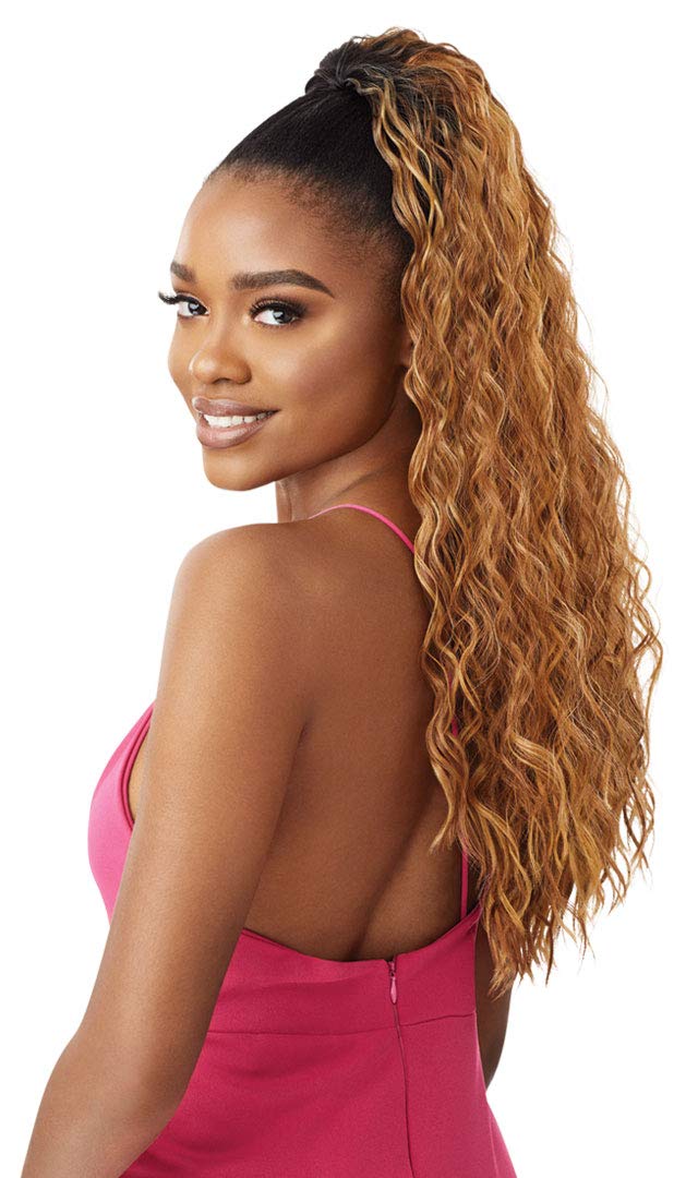 Outre PRETTY QUICK DRAWSTRING PONY Long Curly Wave Ponytail Premium Synthetic Heat Resistant Secure Fit Quick Easy Styling Soft Feel Natural Luster - JOVANI (DR2/TMS)