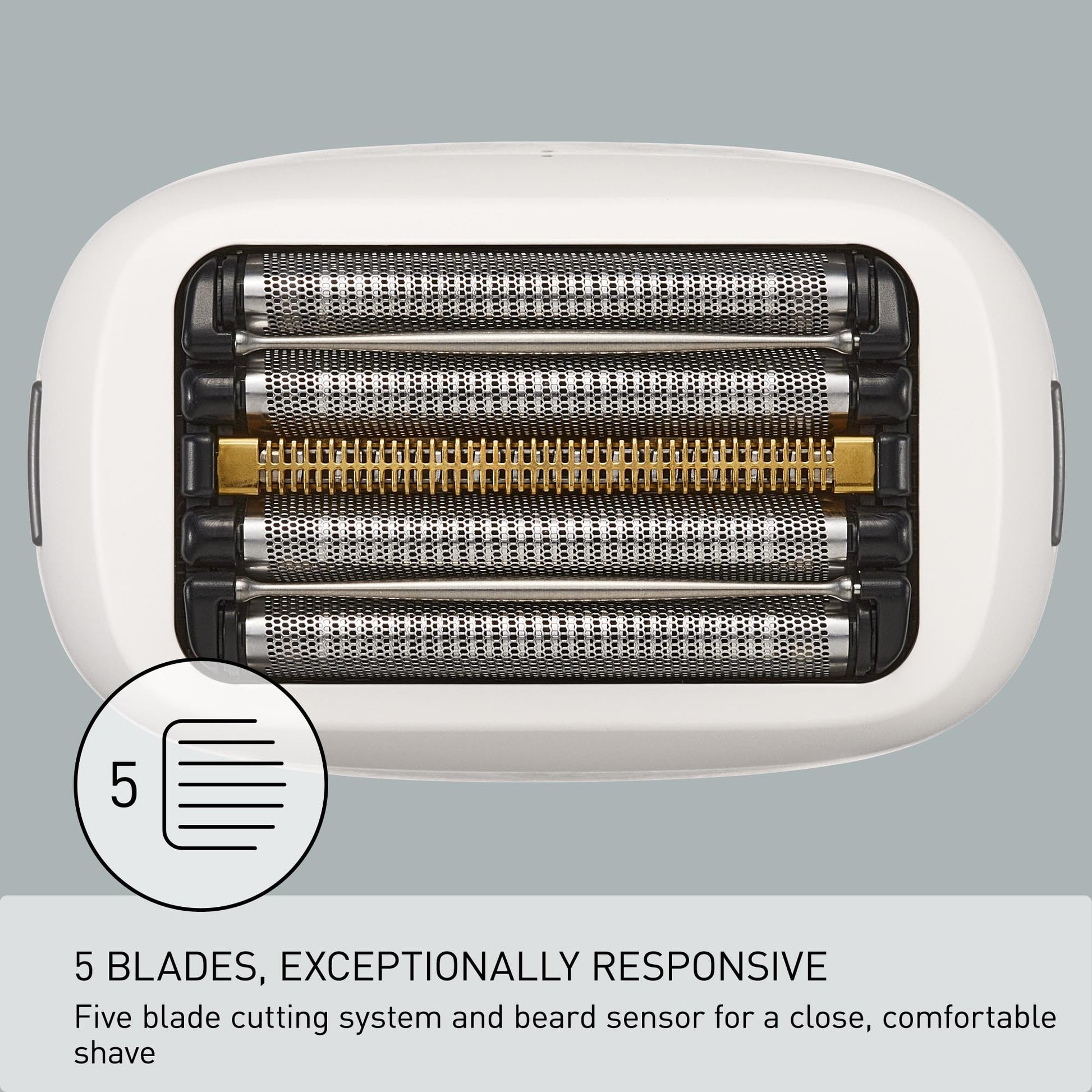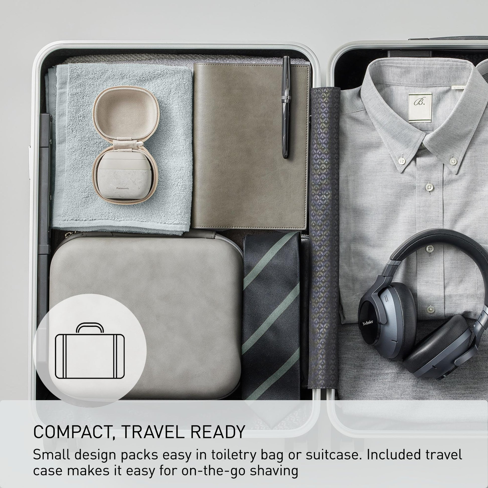 - Quiet Luxury That's Travel Ready: The unique, smooth shape makes this shaver exceptionally suited to pack for trips and offers exceptional control when shaving; powerful five-blade shaving system gently cuts every hair without irritation, so you can look great anywhere.