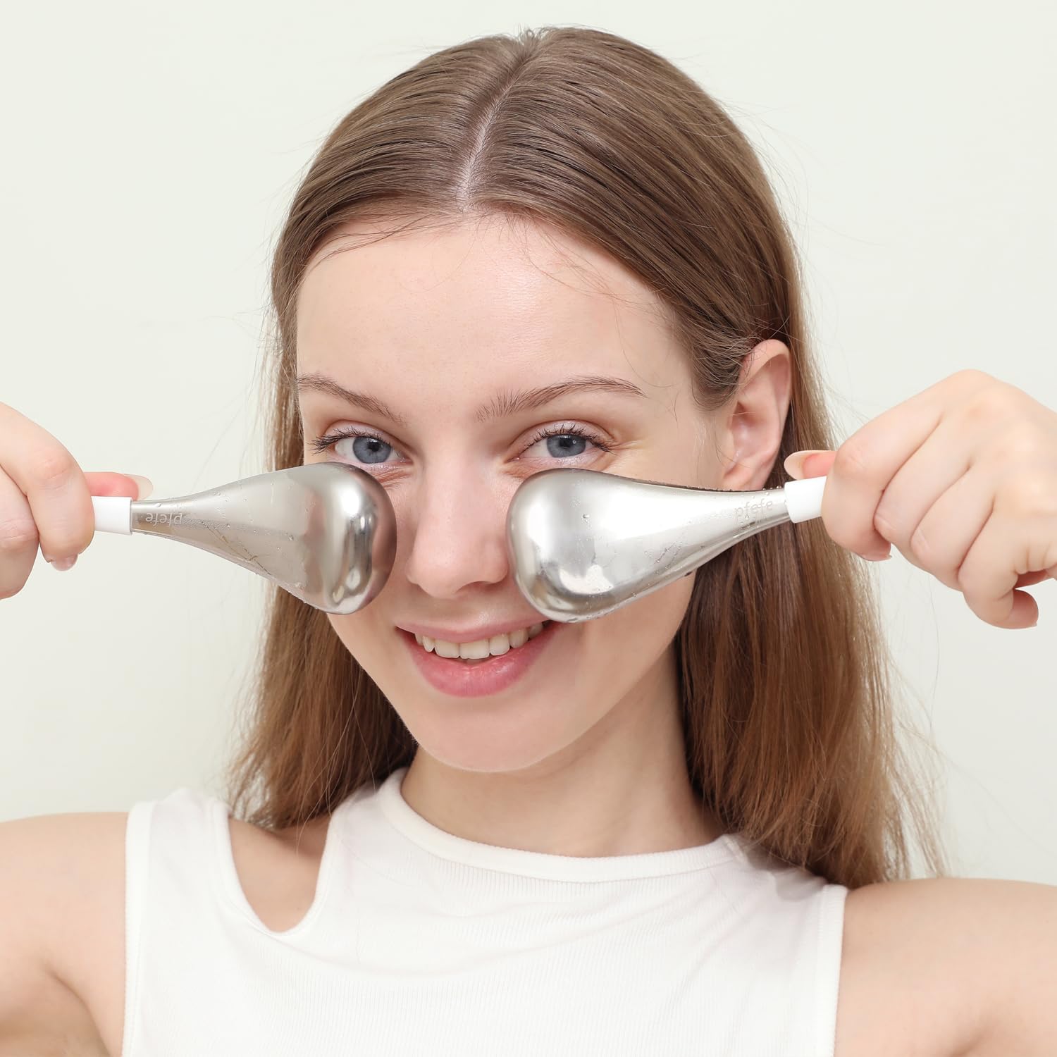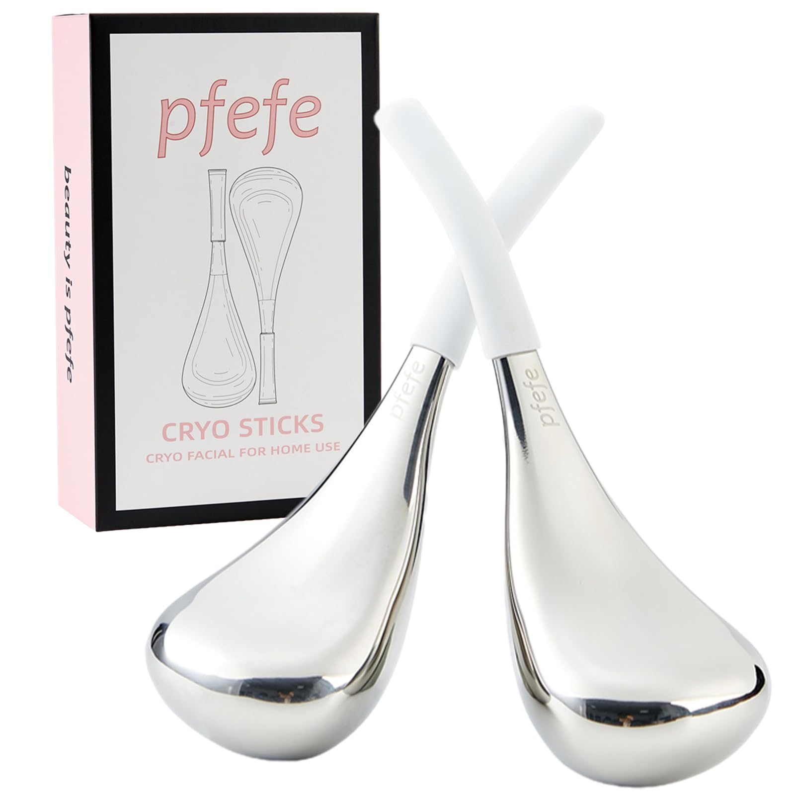 pfefe Cryo Sticks Facial Skin Care Ice Globes for Women Face Eyes, Stainless Steel Face Beauty Tools for Girls Ladies, Esthetician Supplies Cooling Spa Globes with Storage Case
