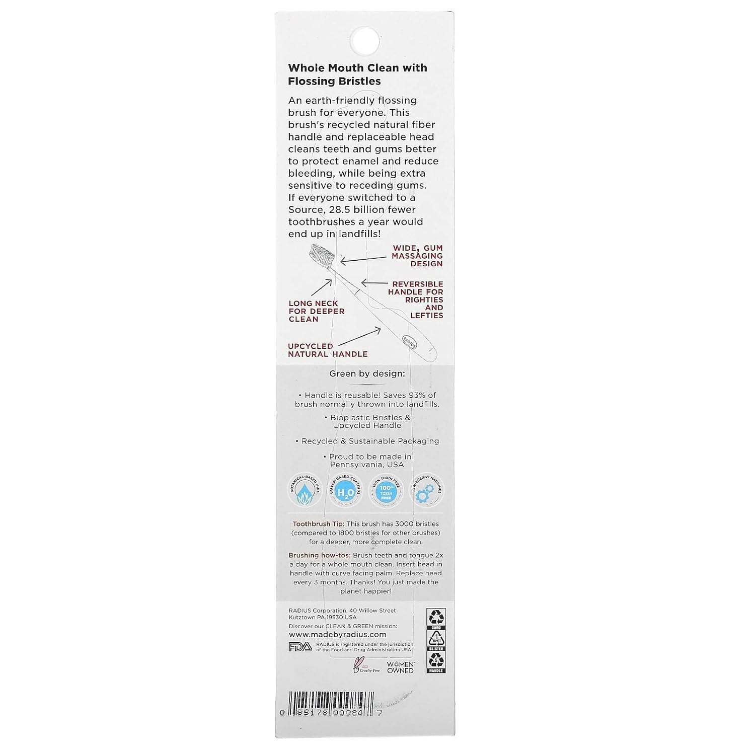 RADIUS Toothbrush Source Floss Brush BPA Free & ADA Accepted Improve Gum Health & Reduce Gum Issues - Super Soft - Cornstarch/Wood/Money - Pack of 3