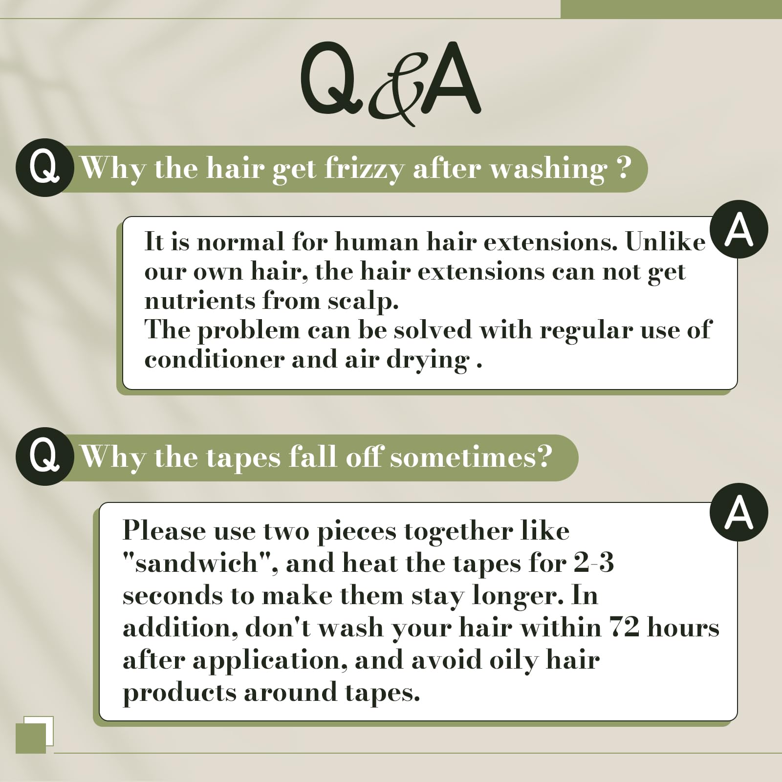 - 【Installation & Take Out】Tape Hair Extensions are easy to apply and more invisible. Apply it with “sandwich" way and heat it for a few seconds, it will be more firm! The extensions typically last anywhere from 8-14 weeks. Please remove the extensions with professional remover in case hurting your natural hair.