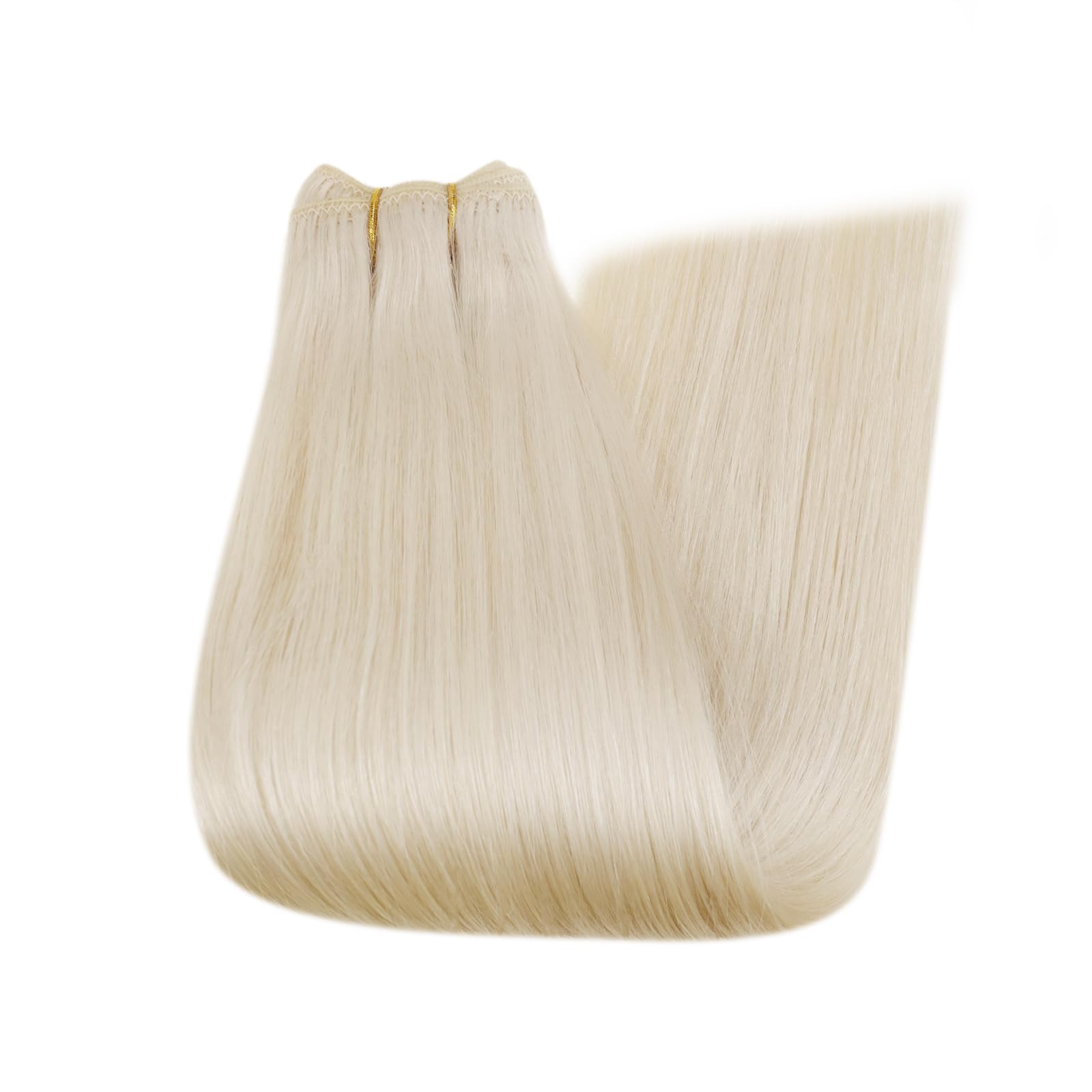 RUNATURE Blonde Weft Hair Extensions Human Hair,Straight Double Weft Sew in Bundles Human Hair,Weaving Thick Remy Hair Weft Extensions Hairpiece Short 12 Inch 70g
