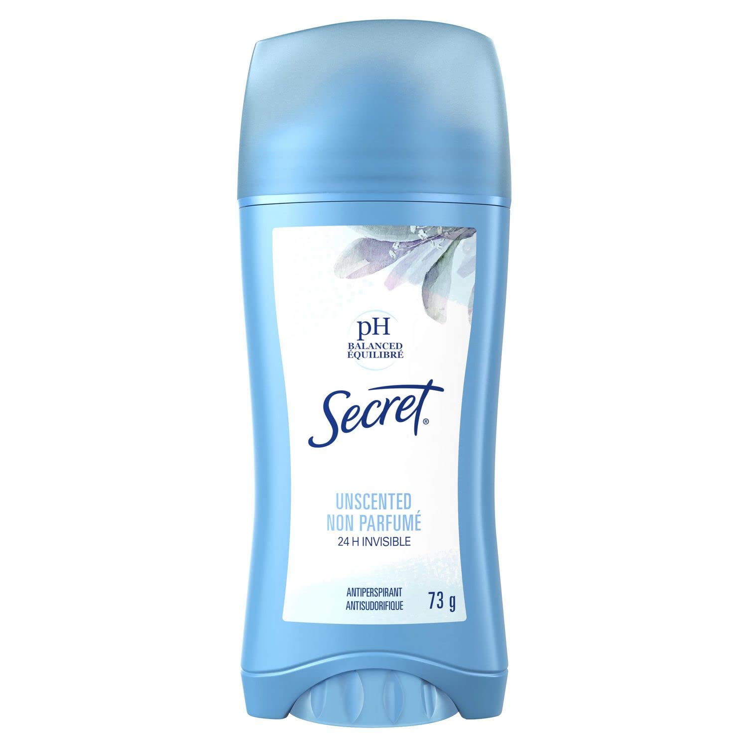 Secret Invisible Solid Unscented Deodorant offers discreet and long-lasting protection. Its pH-balanced formula neutralizes odor without overpowering your natural scent, while remaining gentle on skin. Stay fresh and confident throughout the day, free from sweat and irritation, and forget about deodorant marks on your clothes. NDC Code: 69423-625-73.