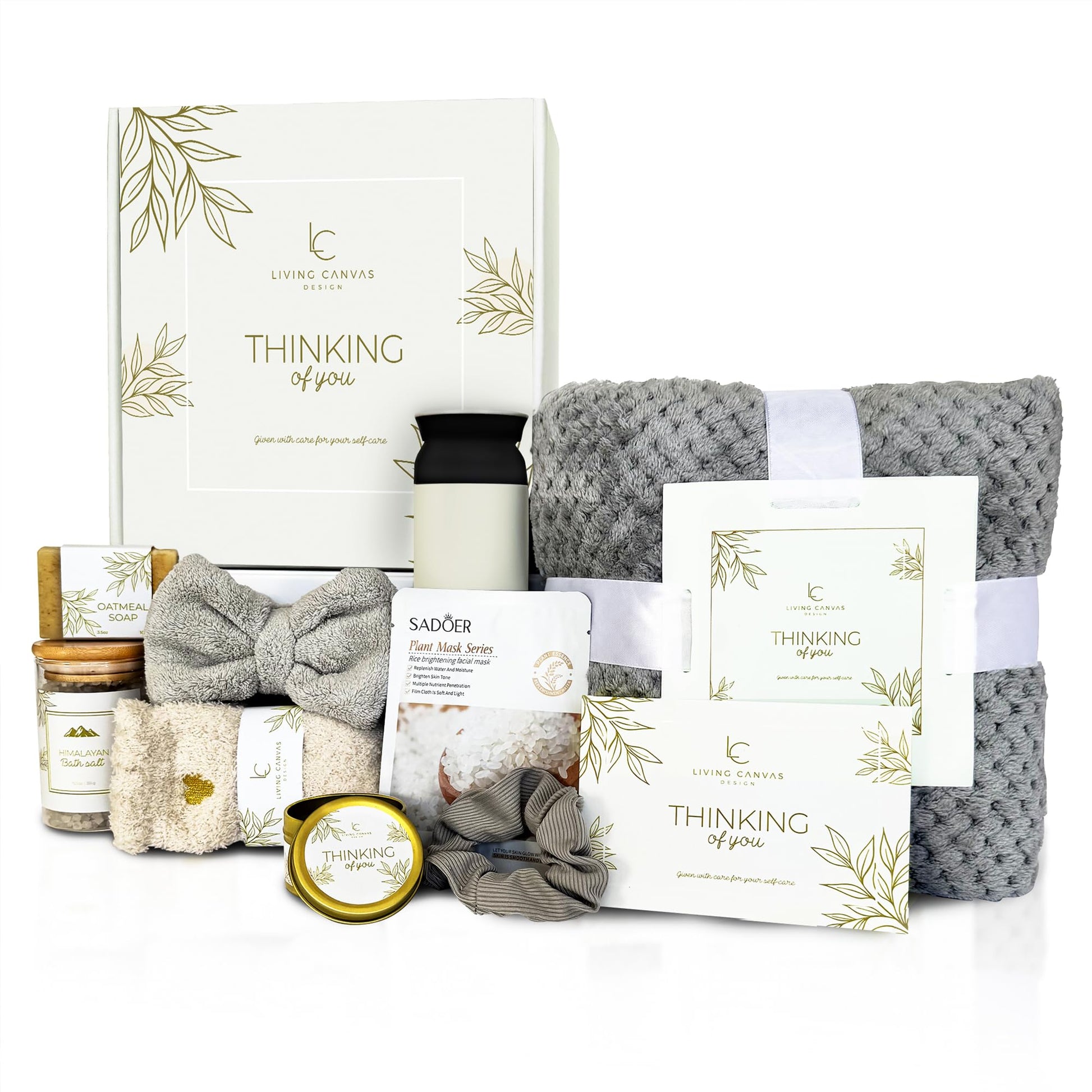 Self Care Gifts for Women 11 Piece, Womens Get Well Gifts for Mom Girlfriend Wife Daughter, Women’s Spa Gifts Baskets With Bath Salts, Oatmeal Soap, Blanket, Encouraging Inspirational Gift Basket, Whi