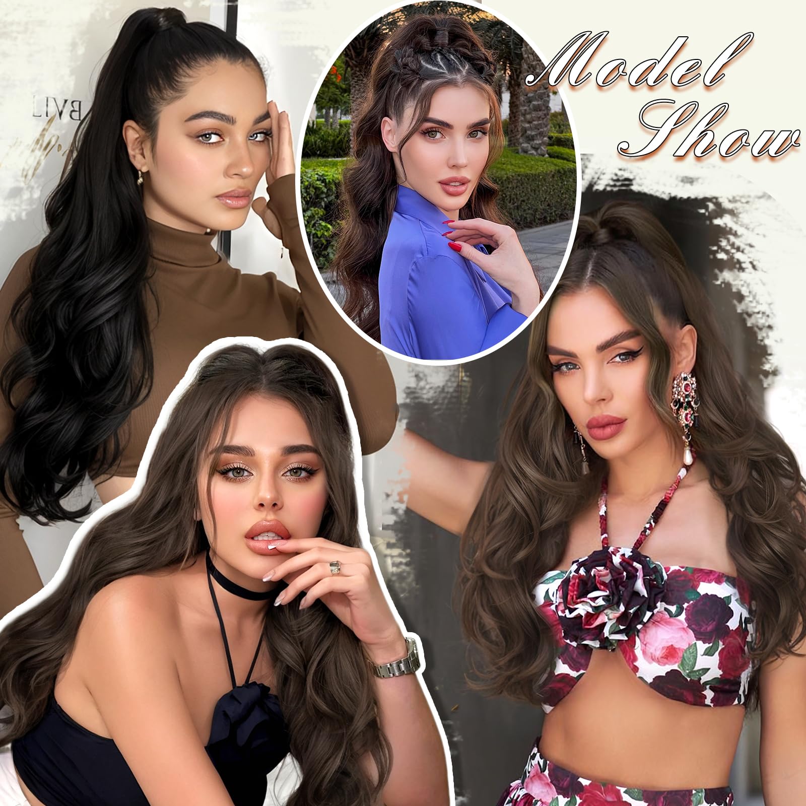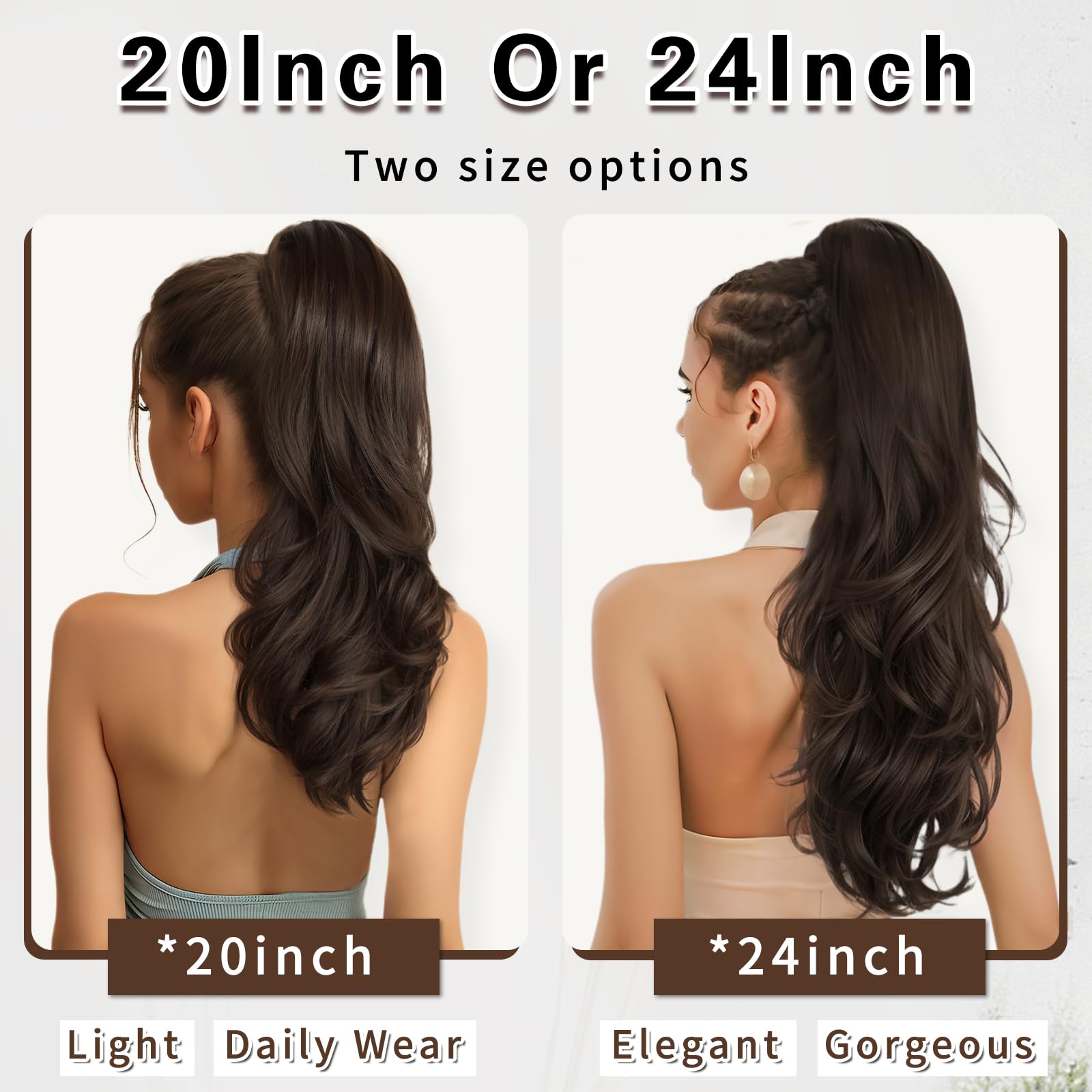 SHNMIN Ponytail Extension, Drawstring Ponytail Extension for Women 24 inch Long Wavy Pony Tails Clip in Ponytail Hair Extensions Synthetic Layered Ponytail for Daily Use