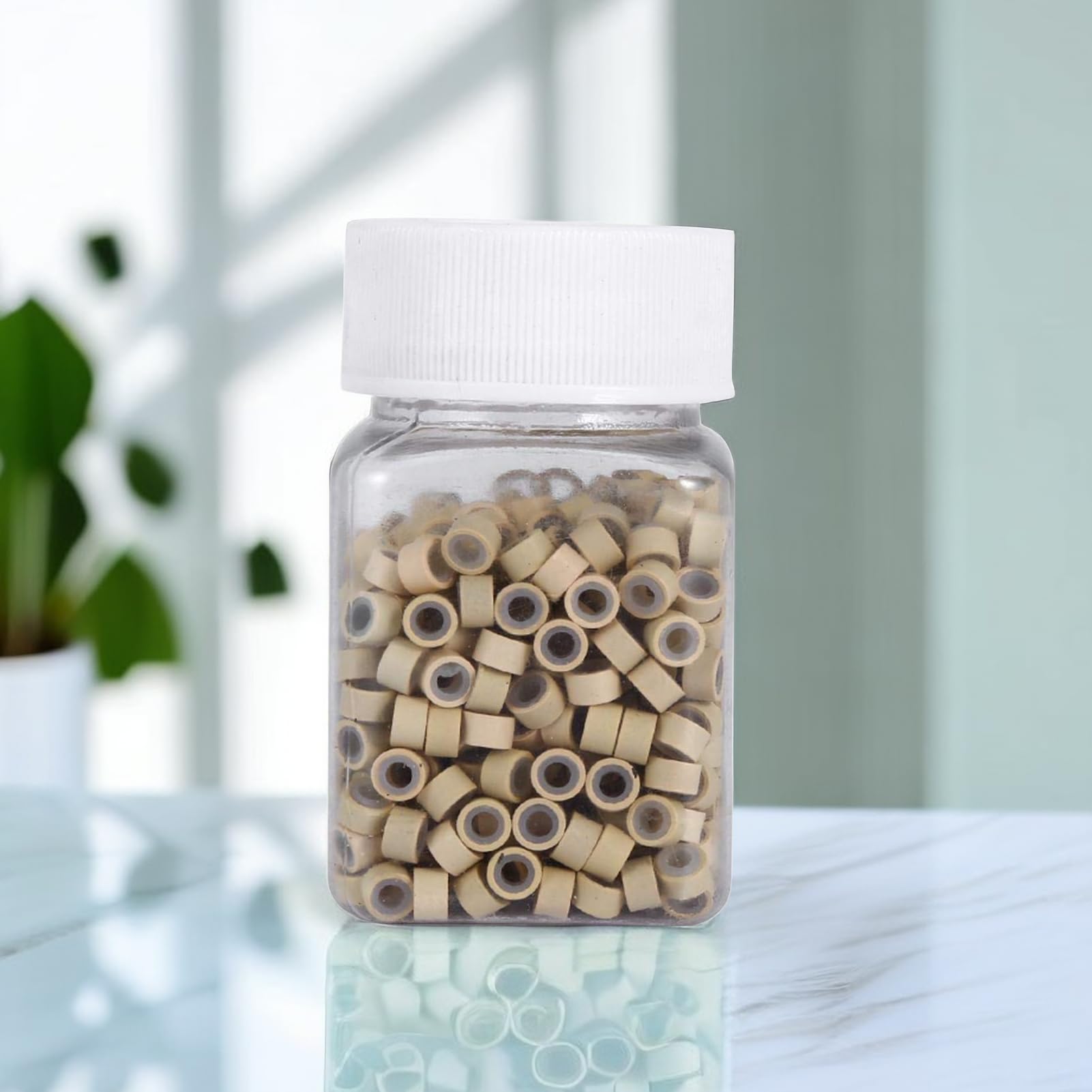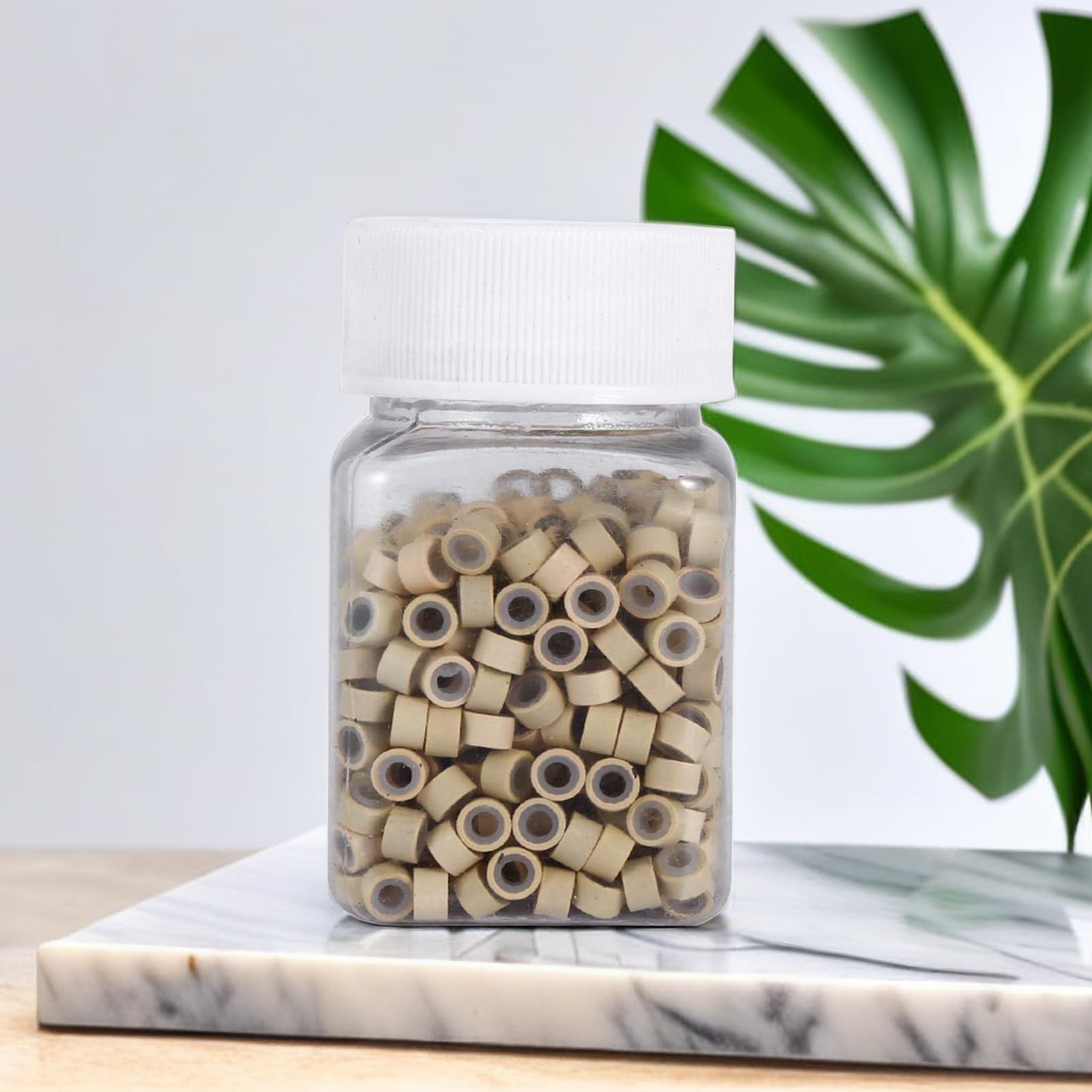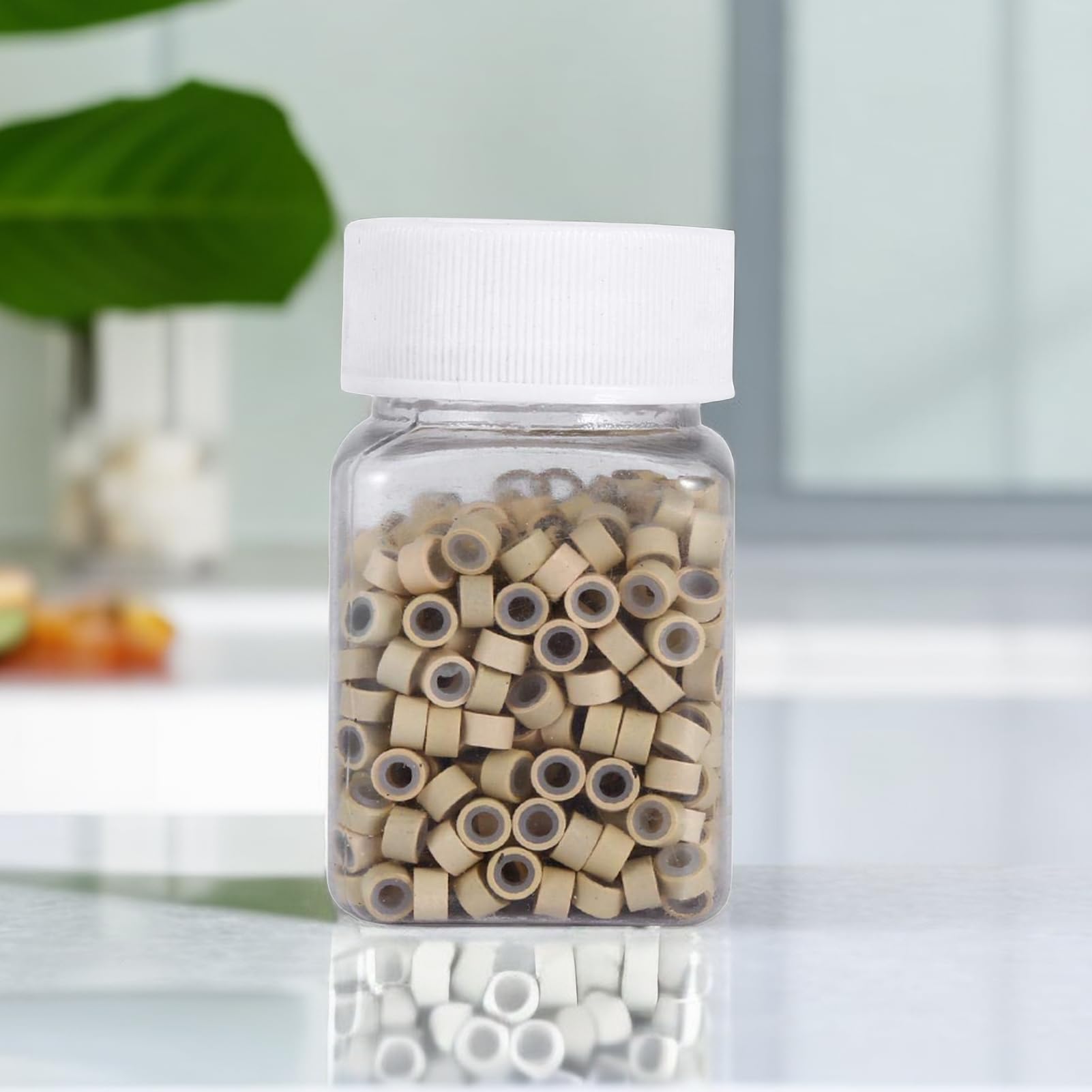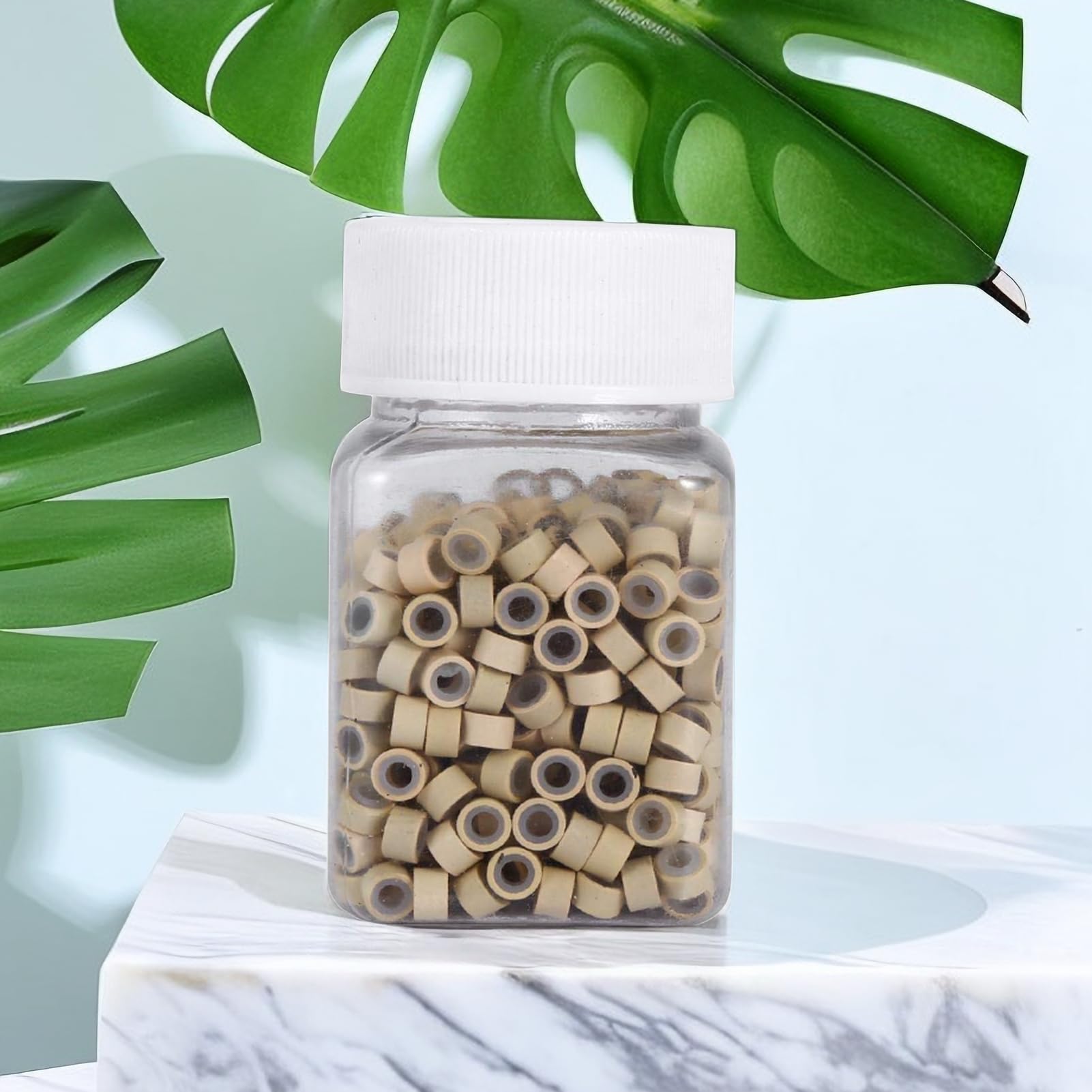 Silicone Micro Link Rings, 1 Bottle/Set 500Pcs 5mm Lined Beads Bead Extension Tool Silicone Lined Micro Beads 5 Colors Optional Silicone Lined Links Beads Linkies for Hair Extensions (Blonde)