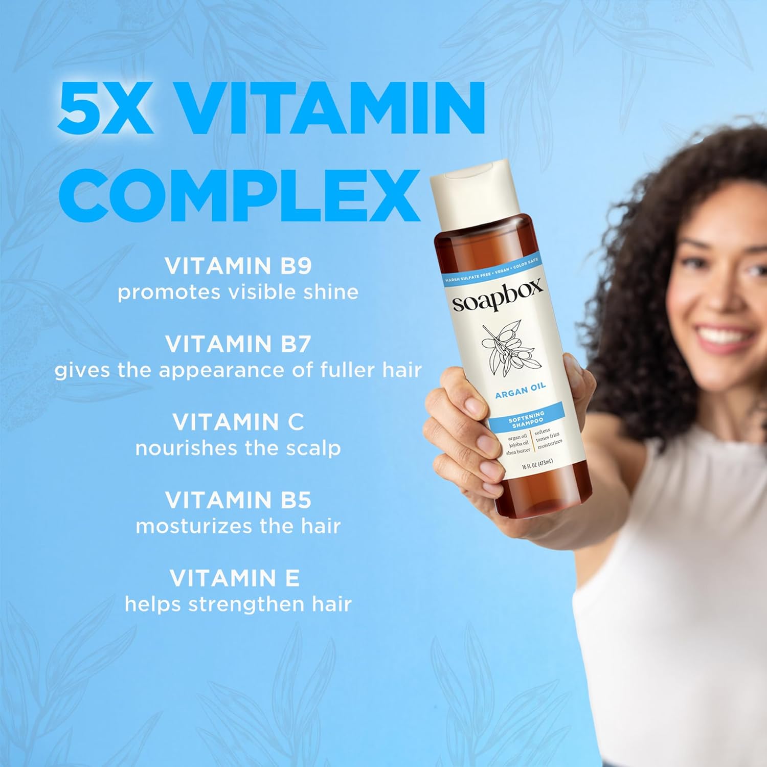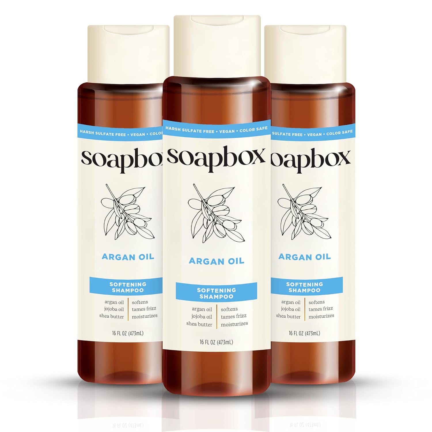 Soapbox Shampoo, Vegan & Cruelty Free Hydrating Shampoo with Argan Oil with Shea Butter, Color Safe, Paraben and Harsh Sulfate Free All Natural Hair Cleanser, 16oz (Pack of 3)