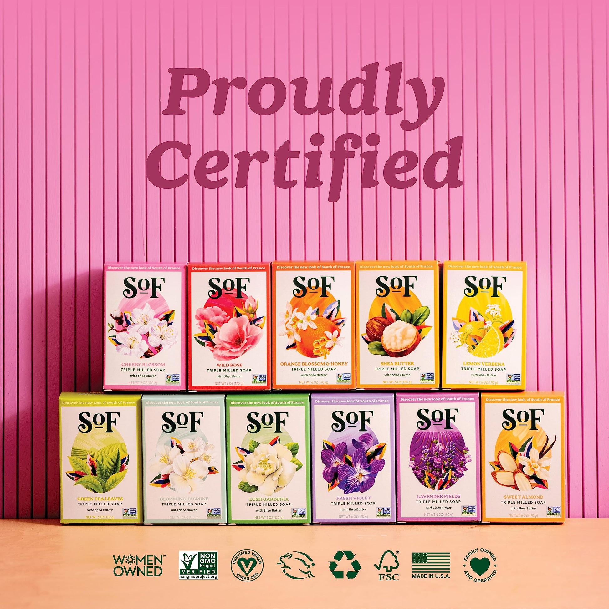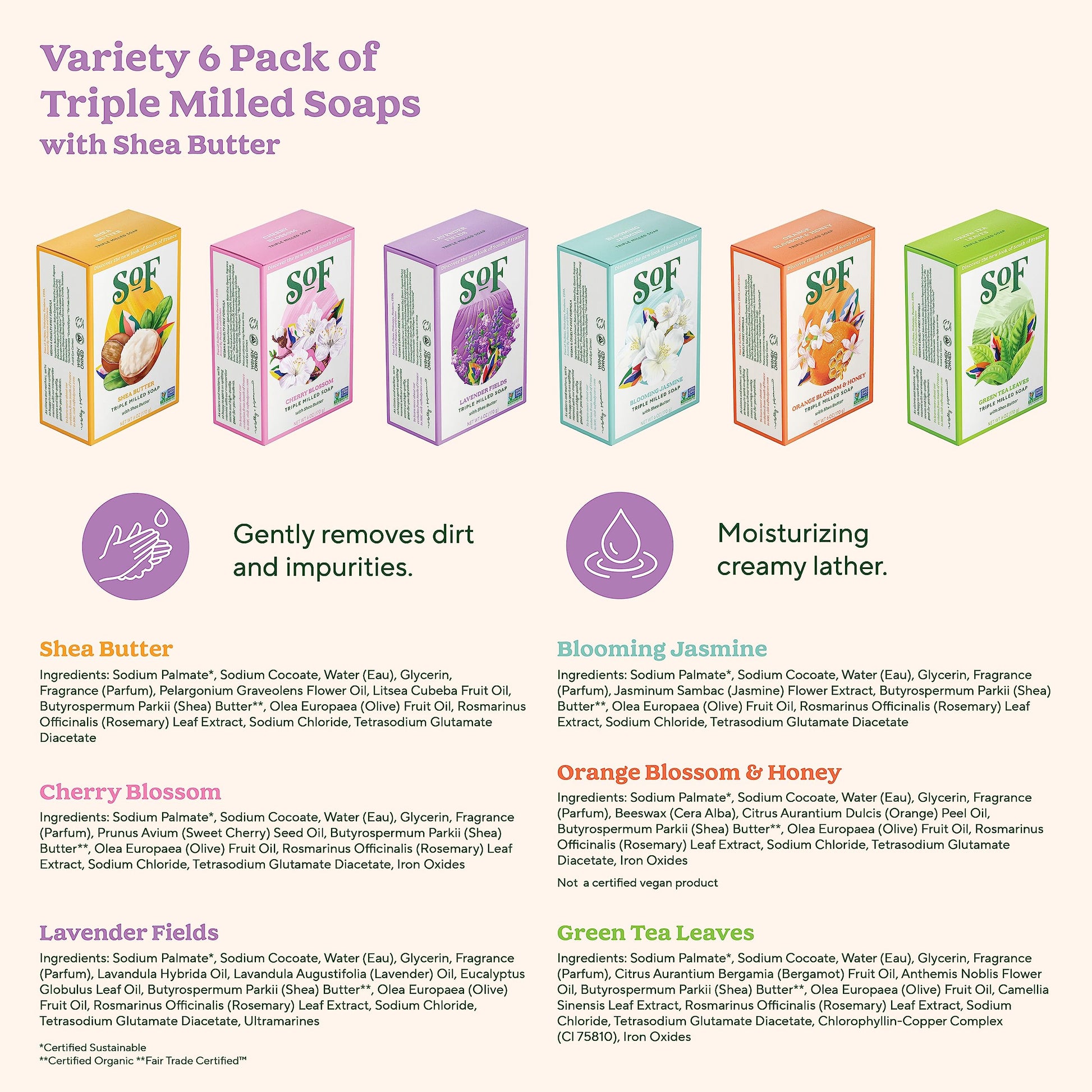 SoF Triple Milled Bar Soap - With Coconut Oil & Organic Shea Butter- Vegan & Non GMO- Free From Phthalates, Sulfates & Parabens- Variety Pack - 6 oz Bar 6 Bars