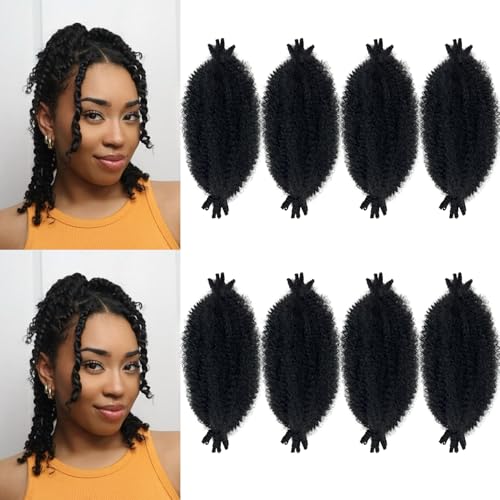 Sunsmilely Afro Twist Hair 8 Inch Marley Twist Braiding Hair 8 Packs Springy Afro Twist Hair 1B Cuban Twist Hair Natural Black Spring Twist Hair Synthetic Wrapping Hair for Soft Locs