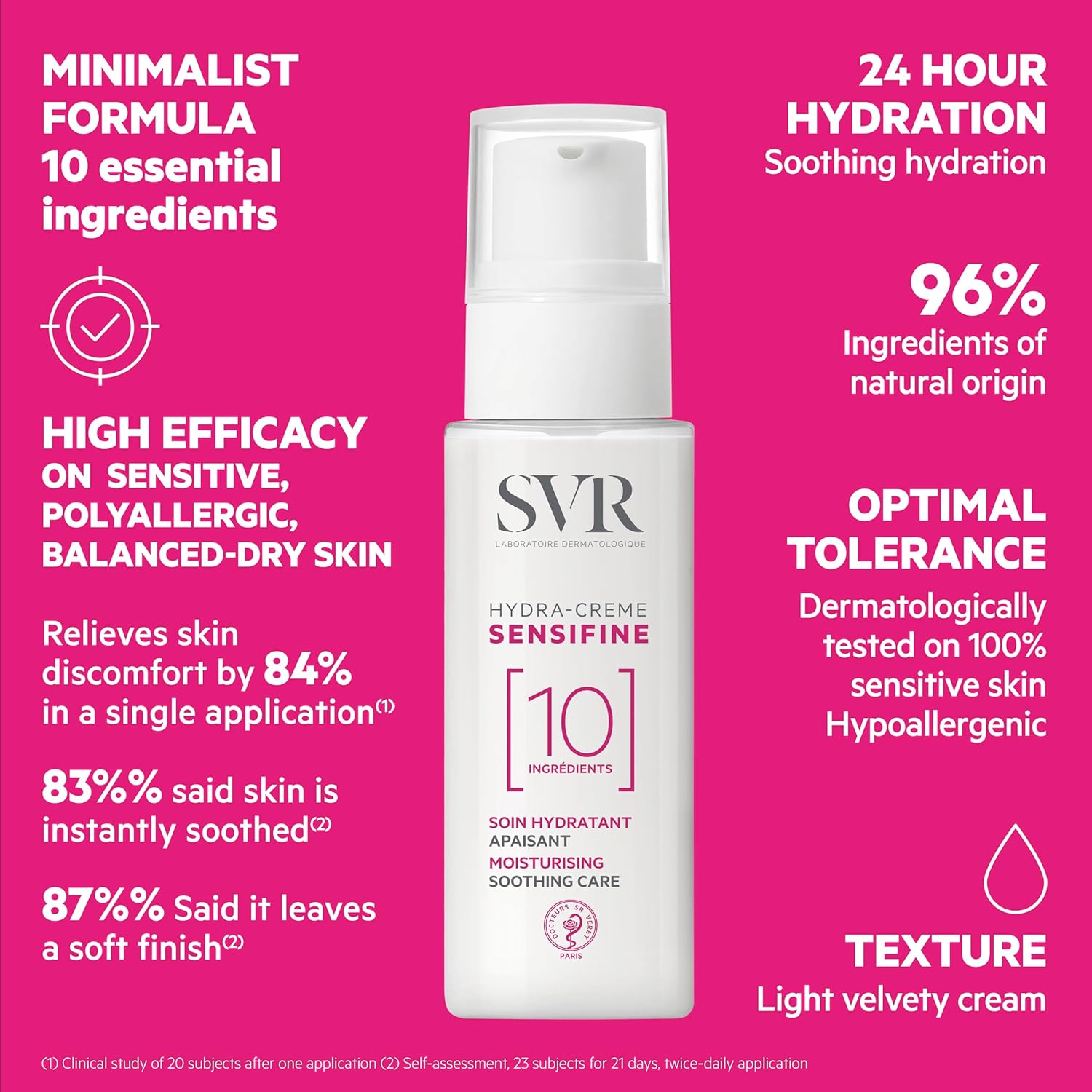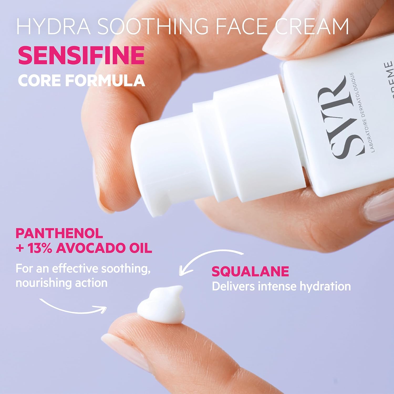SVR Sensifine Hydra Face Cream. Moisturizing Soothing Care For Normal To Dry Dehydrated Skin. Fragrance Free Moisturizer With 96% Ingredients Of Natural Origin. 24hr Comfort And Hydration, 1.3 Fl.oz.