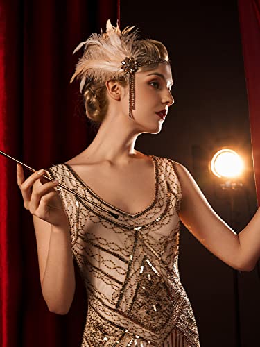 - 【Feature】 Retro design with exquisite handicrafts creates a more comfortable and pleasant wearing experience. An amazing Great Gatsby Party Costume Accessory. The 1920s headband with feathers is impressive and attractive.