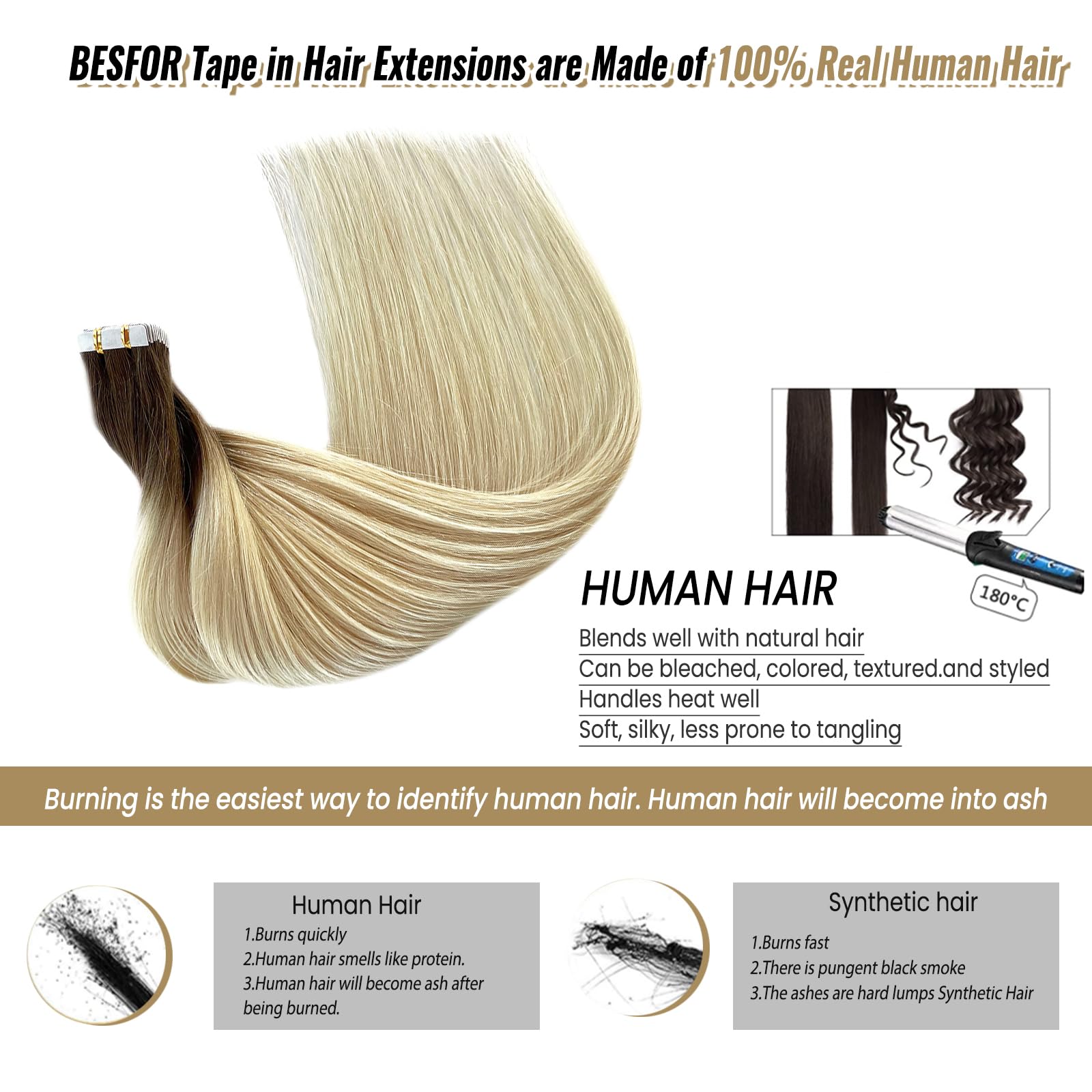 - 【Quick Install】 Each piece of tape human hair extensions is pre-taped, heat the tape for seconds around 150℃ before applying. Installation is fast and easy to remove. You can do it yourself.