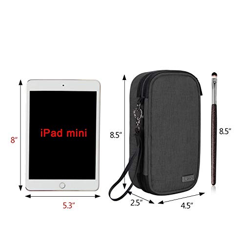 - WELL CONSTRUCTION: The second section is enough roomy to carry your small travel makeup supplies, like Pressed powder, eye shadow pallette, lipstick, eyeliners, mascara, blush and more.
