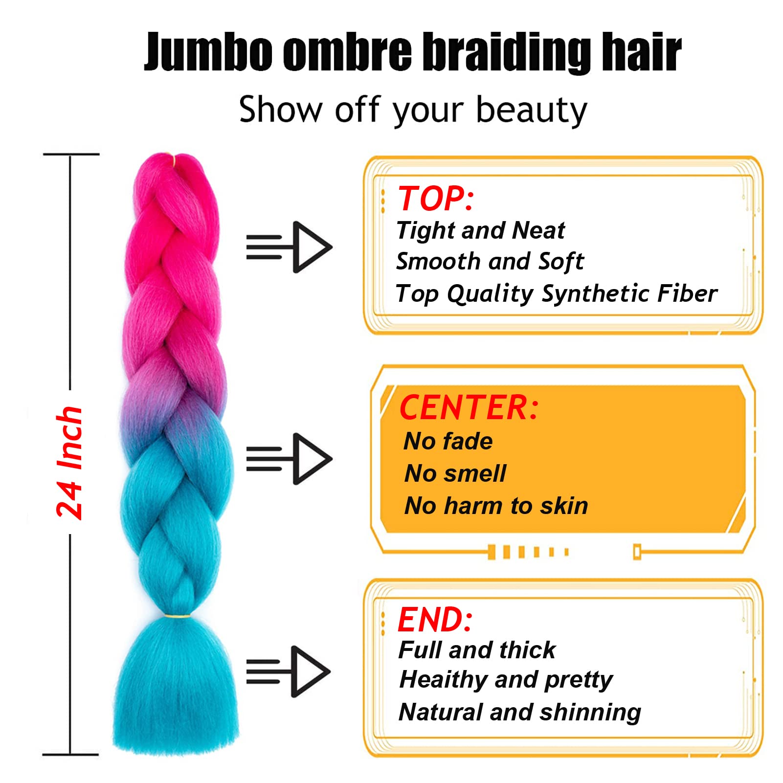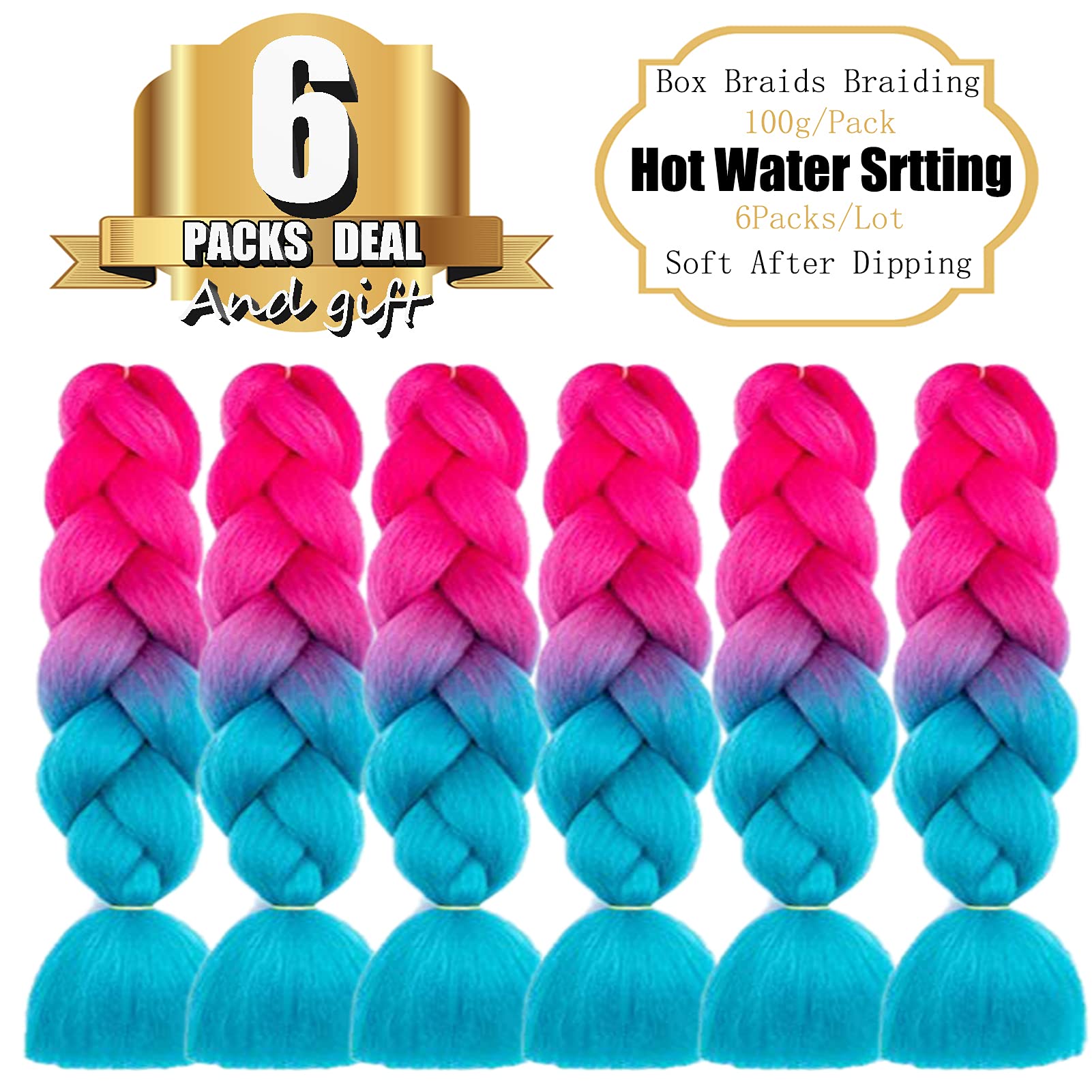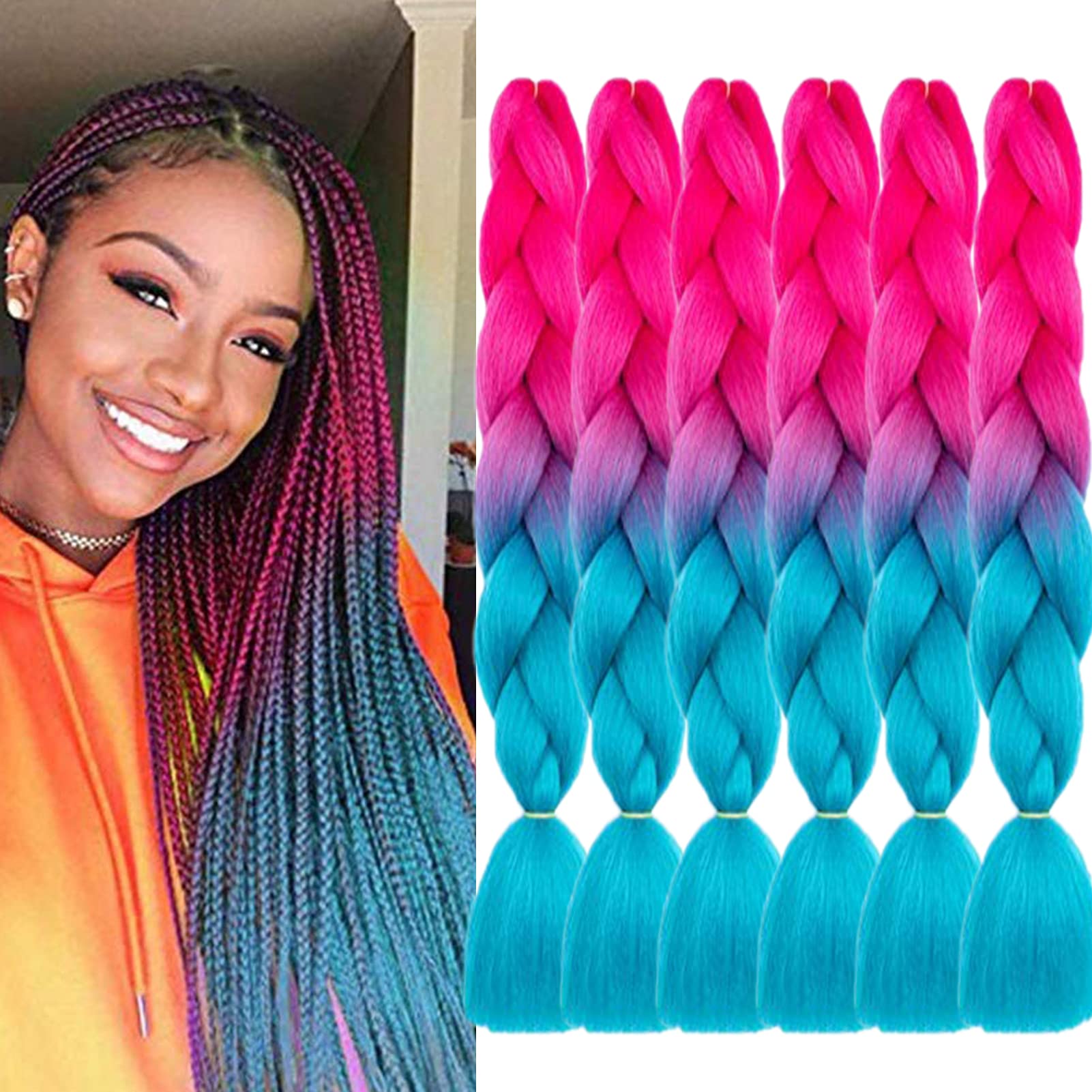 TENGSHUO FLY Pink Lake Blue Braiding Hair 6 Packs Synthetic Braid Hair Extensions Jumbo Ombre Braiding Hair 24 Inch or Box Braids Twist Crochet Braids(24"6Pack,Pink Lake Blue)