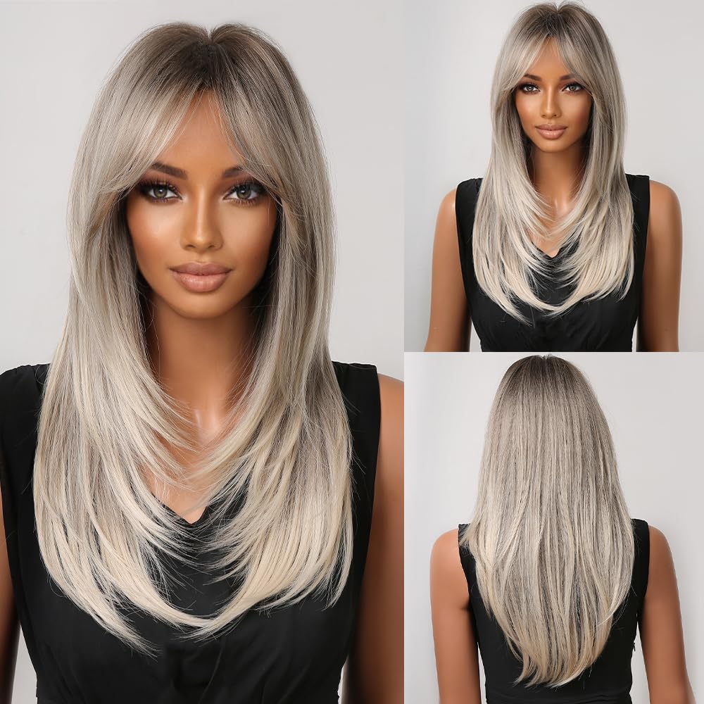 - 【Applicable Occasions】Gray wigs with dark roots have always been popular among women, as they are suitable for women of all age groups. I believe this long straight brown wig can make you more confident, beautiful, and charming in gatherings, at work, daily use,parties and so on.