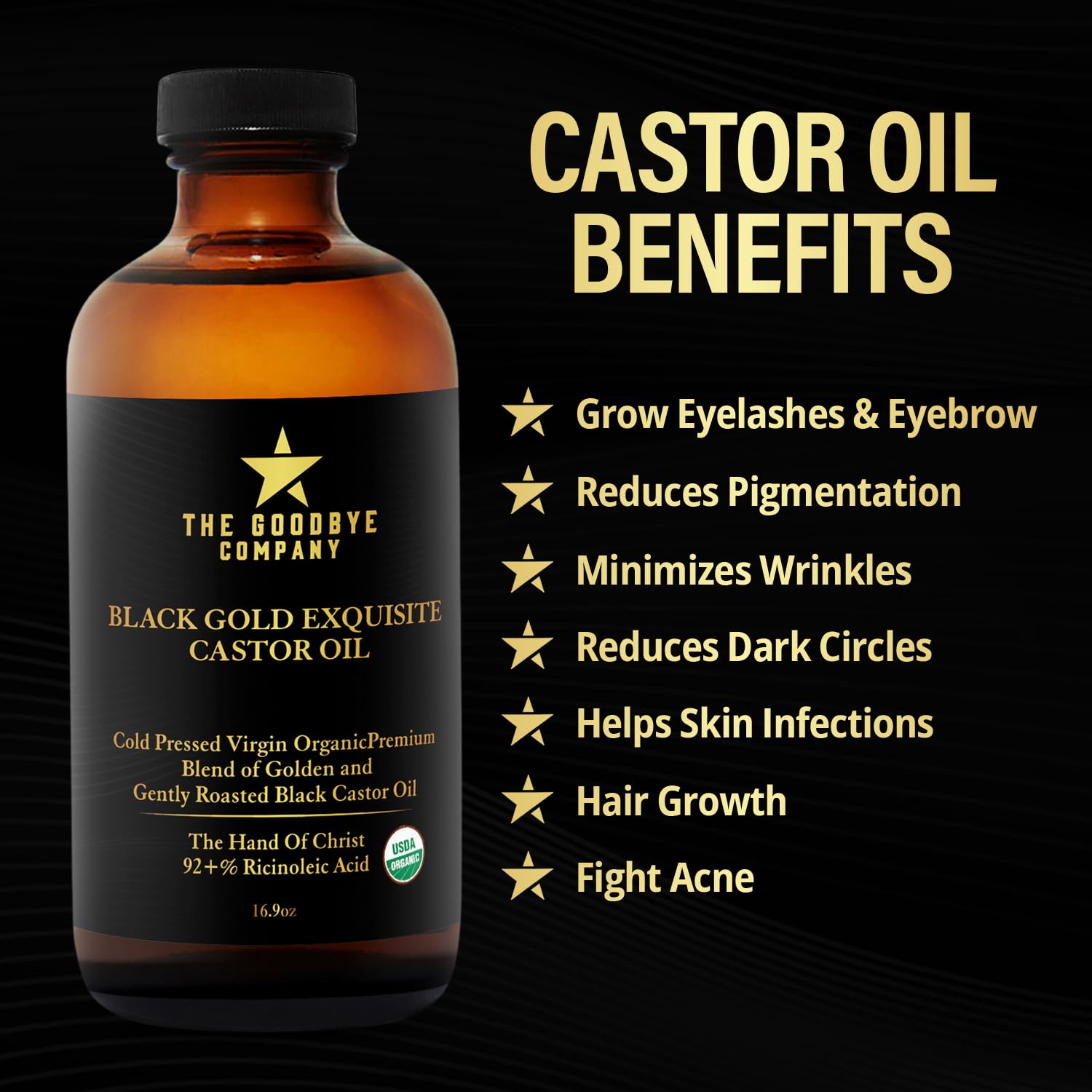 The Goodbye Company Jamaican Black & Gold Castor Oil Blend – USDA Organic, Cold-Pressed & Unrefined – Pure Hexane-Free Oil for Hair, Skin, Body, Eyelashes & Eyebrows