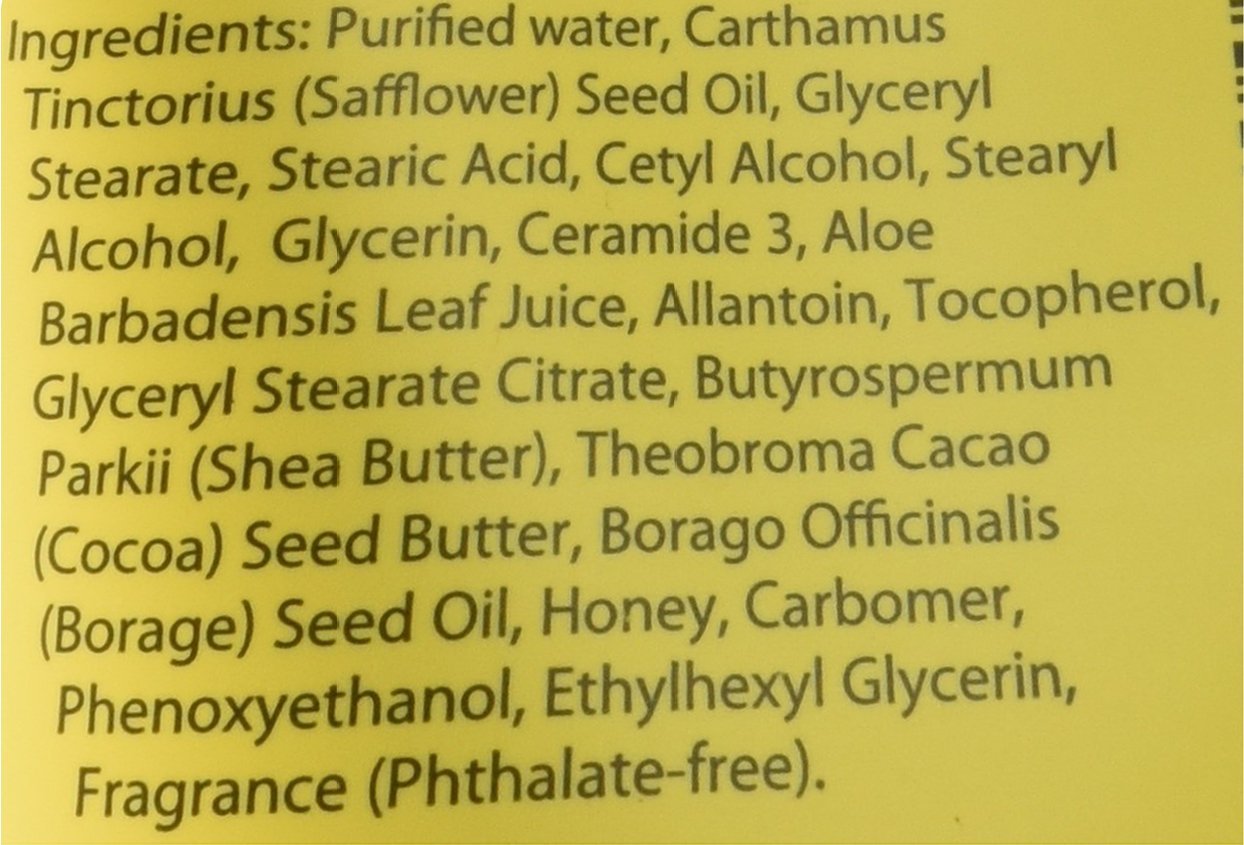 - Shea butter and safflower seed oil promote healthy skin. Rich in anti-oxidents and made with honey and Ceramide 3 to soften and heal severely dry or cracked skin in our Grapefruit Blossom Honey scent.