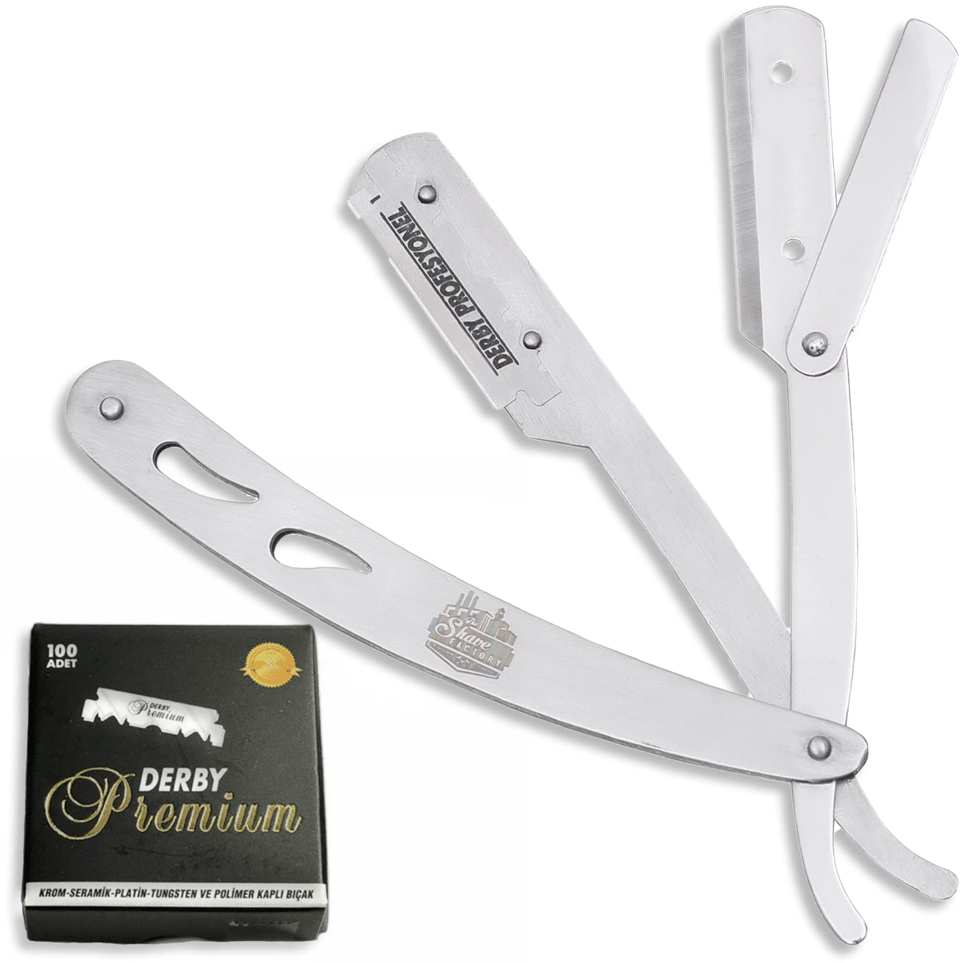 The Shave Factory Straight Edge Razor Kit (Steel Razor / 100 Derby Premium Single Edge Razor Blades)