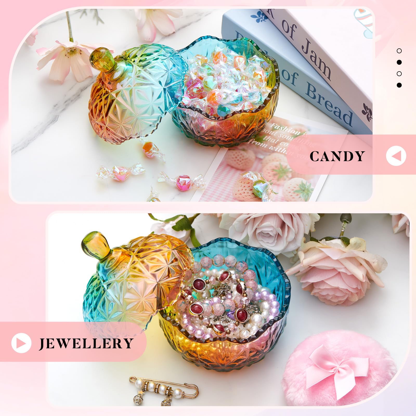- Exquisite Design and Material: the set includes two powder puffs and a glass puff container; Our glass powder puff jars look beautiful, crystal glass material, powder puff is made of soft and skin-friendly plush; This vintage and classy style is designed to offer an irresistibly soft feeling on your skin while presenting an elegant look; Tips: this product is not a sealed can