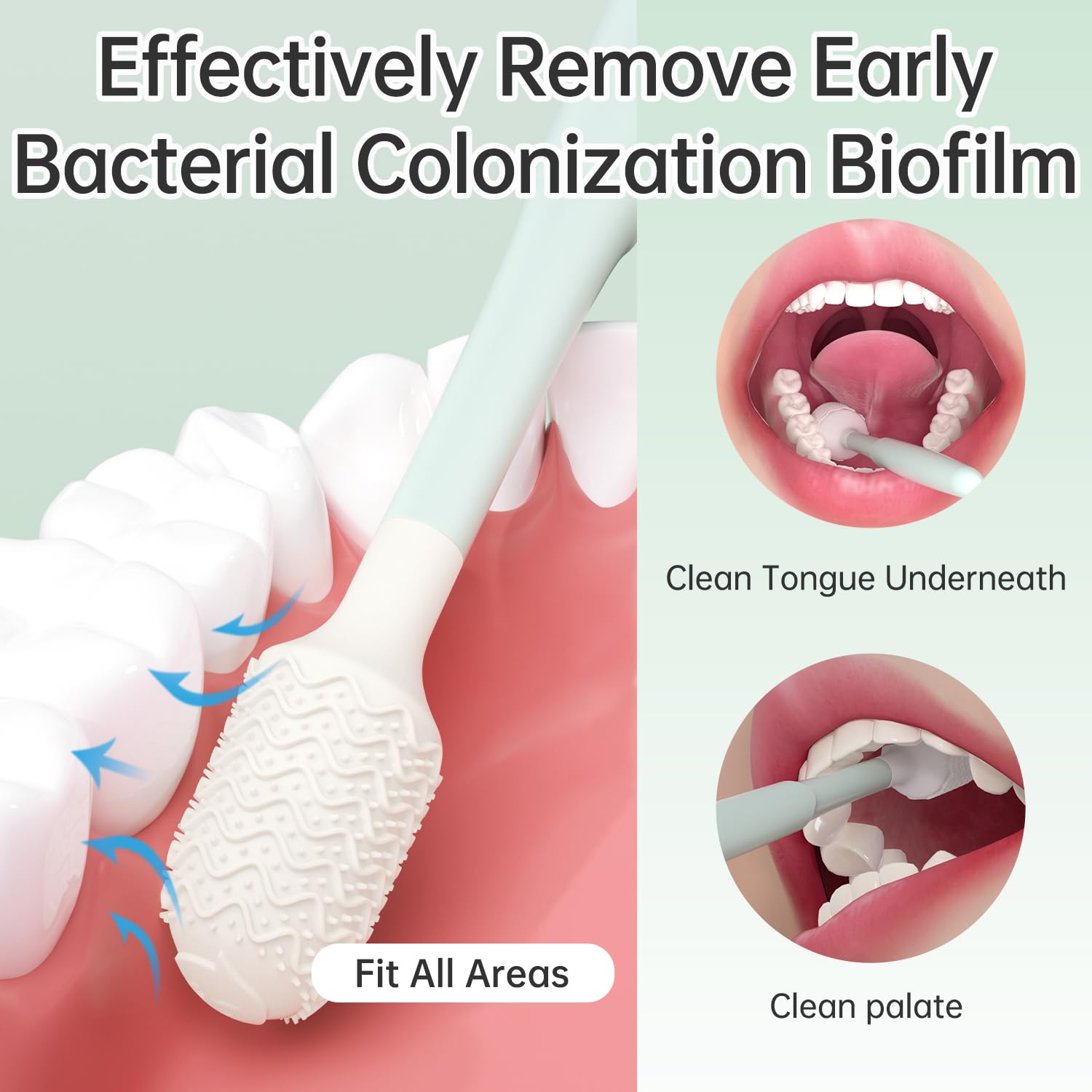 - DESIGNED BY A DENTIST TO CLEAN ORAL MUSOCA: Dental research proves that over 90% of bad breath comes from the early bacterial colonization in biofilm attached on oral mucosa, and the only way to effectively remove it without damaging is cleaning manually and completely. Tongueclear Flex Brush fights bad breath by cleaning biofilm attached where other oral cleaner cannot reach, which can also effectively reduce the concurrence of periodontitis. It’s the FIRST oral mucosa cleaner in the world;