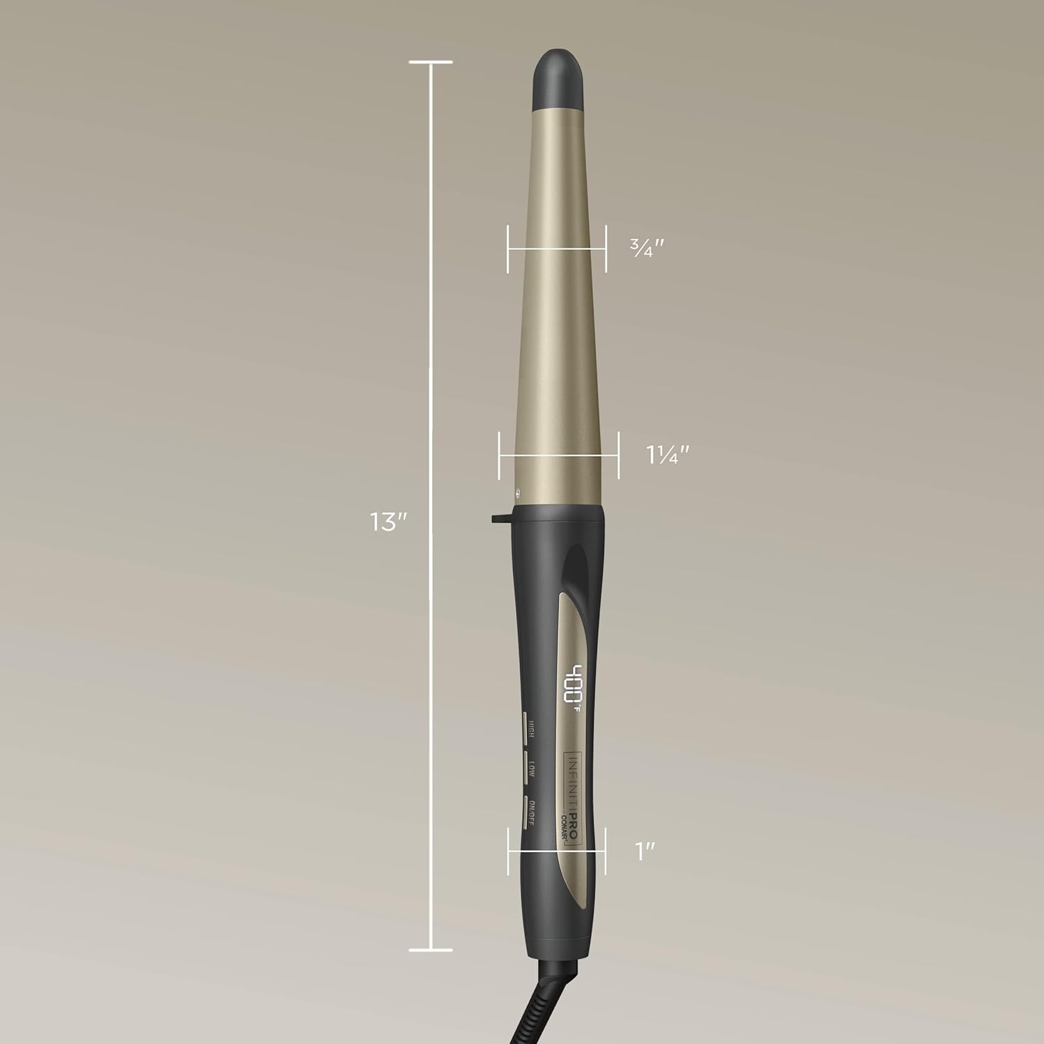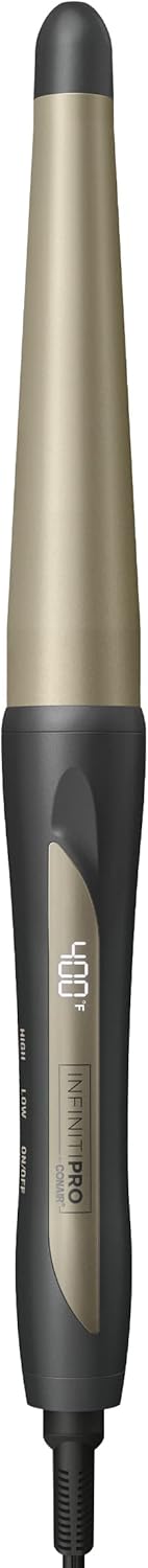 Frizz-fighting ions. Customizable temperature settings. Even heat for less damage. Get it all and create the tousled waves you love with the InfinitiPRO by Conair 1¼"–¾" Tourmaline Ceramic Curling Wand. Designed to maximize curl definition and volume with no clip needed, this styling essential features a tourmaline ceramic-coated barrel to reduce frizz and give you smooth, shiny results. The true ceramic heater heats up in 30 seconds and generates consistent heat for a flawless finish as soon as it reaches a stabilized temperature. The temperature select buttons and digital LED display make it easy to customize heat for your hair type. Choose from 5 heat settings up to 400°F. With such a wide range of heat options, there's a setting for every hair type and texture.
