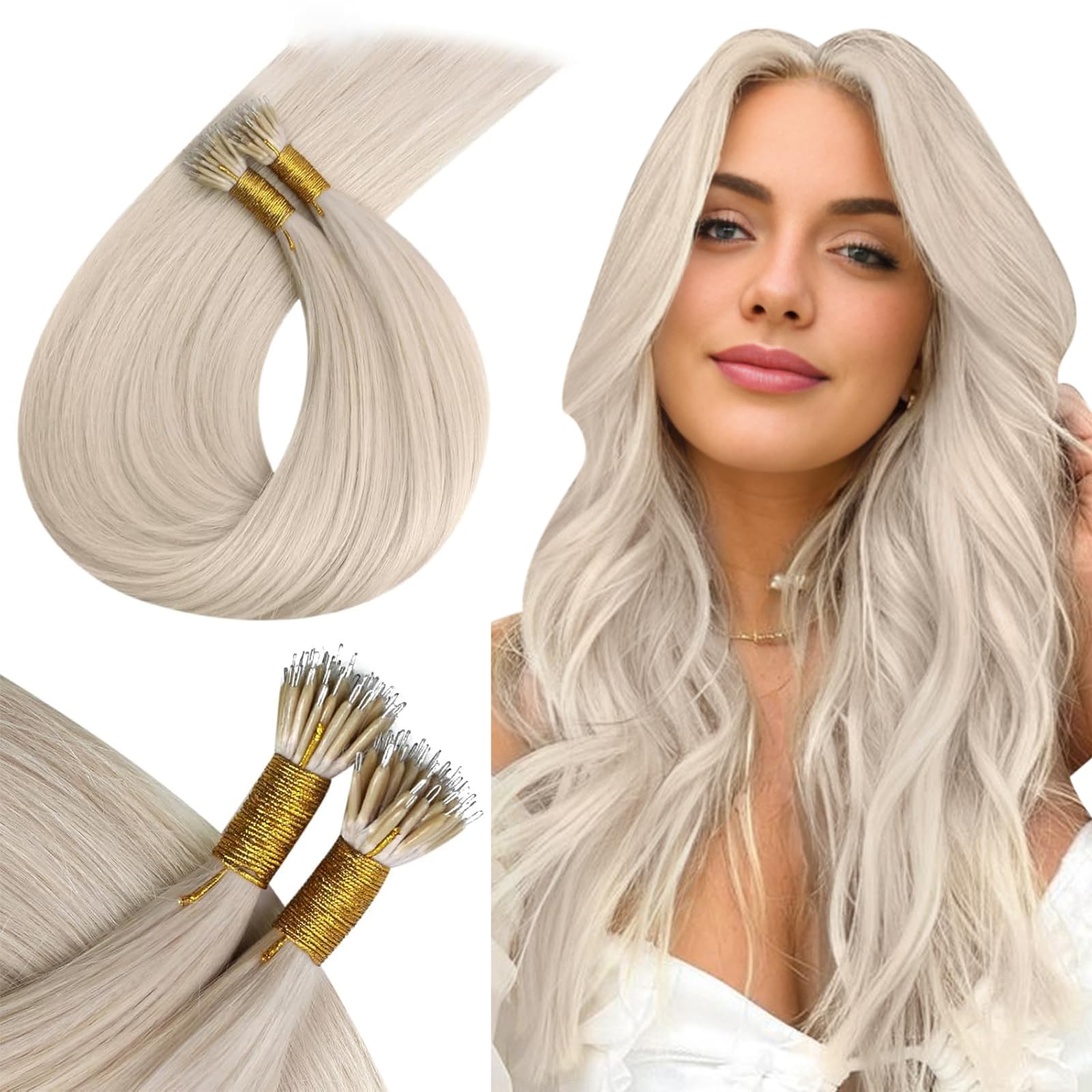Ugeat Nano Hair Extensions Human Hair Platinum Blonde 14 inch Remy Nano Bead Hair Extensions Human Hair Blonde Nano Bead Hair Extensions Real Human Hair 50G 50S
