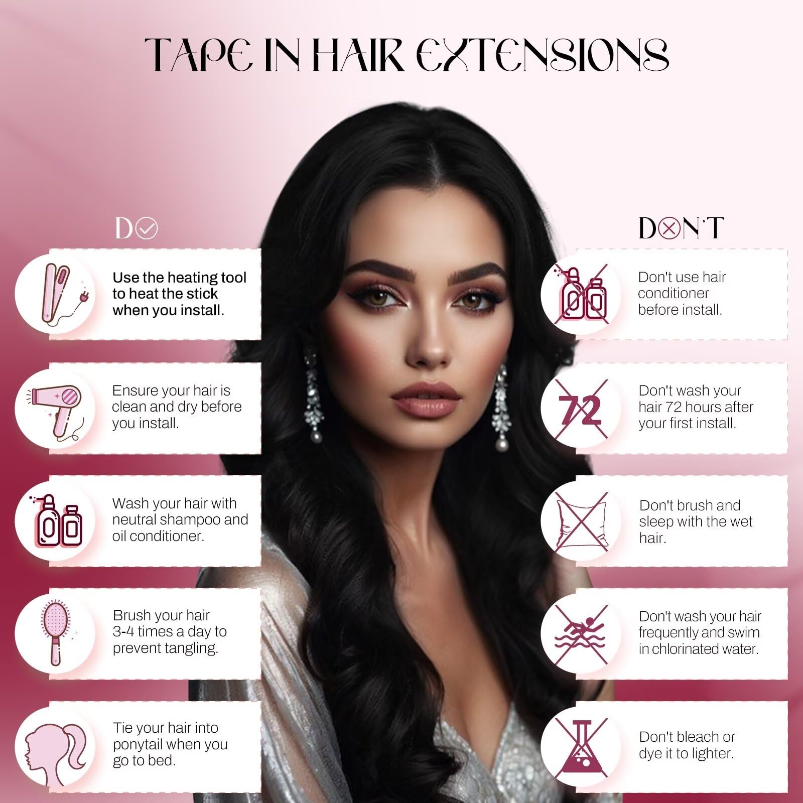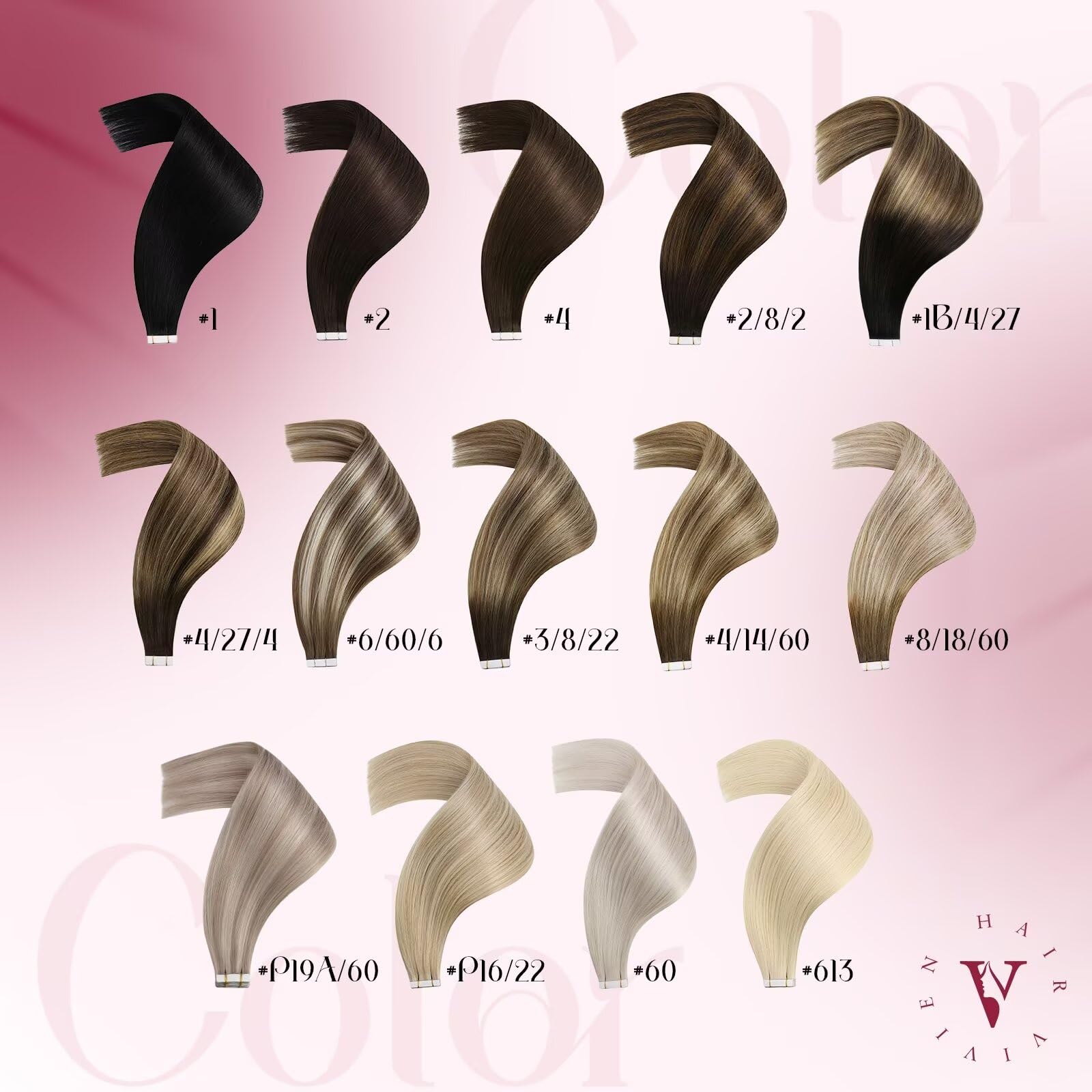 - 【Seamless Application】: Designed with seamless technology, these tape in extensions blend seamlessly with your natural hair.Provides an undetectable look effect.Vivien tape in hair extensions human hair are double sided tape with strong adhesive and hypoallergenic. It can be reapplied over and over again. And each pack of hair comes with extra replaceable tapes.