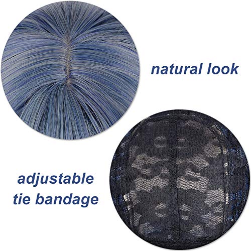 VRbeatter Blue Wig Short Bob Wigs With Air Bags Shouder Length Wigs Synthetic Heat Resistant Wigs Cosplay Wig Natural Looking (12" Mix blue)