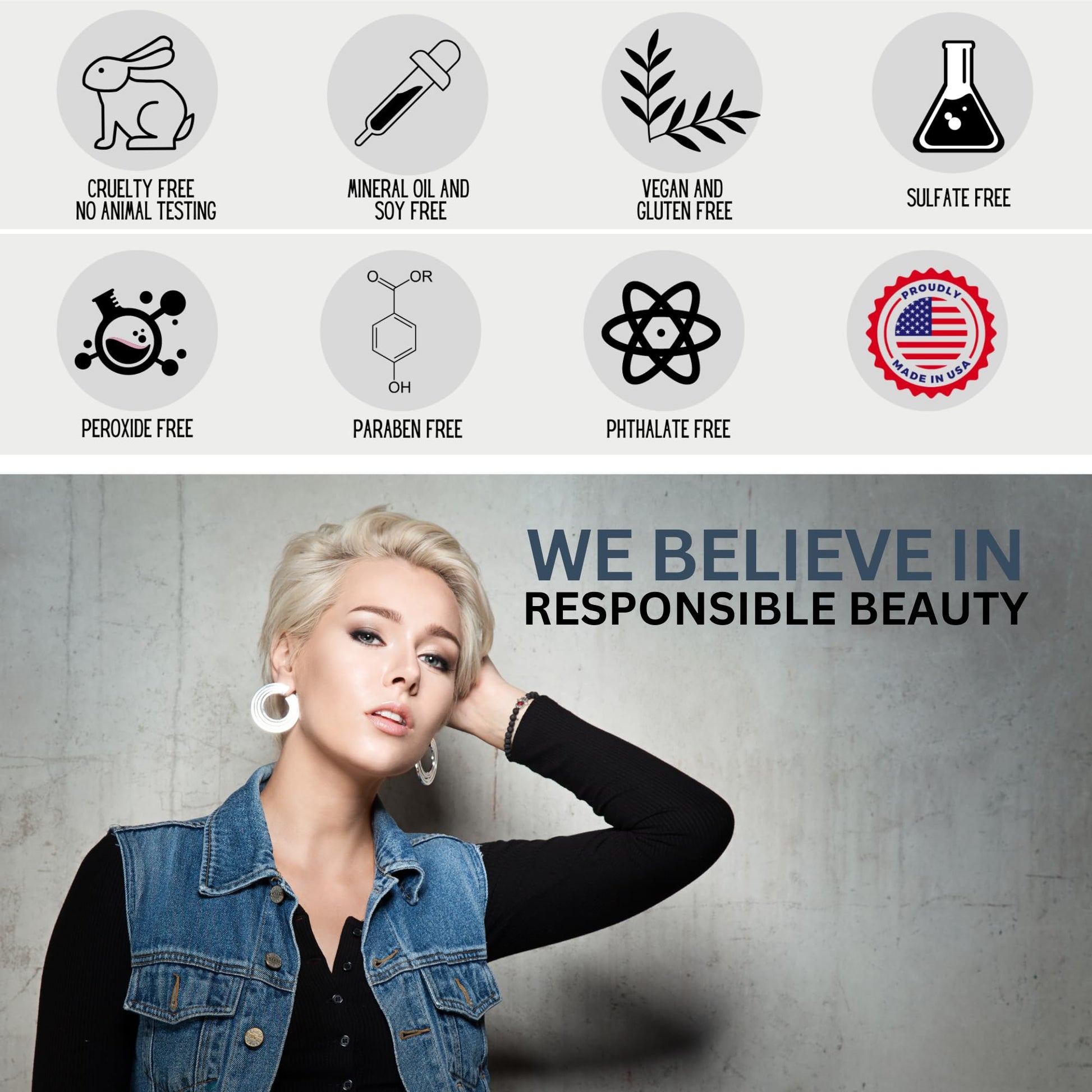- We Believe In Responsible Beauty. Made in the USA & Cruelty-free: 100% Cruelty-free, never tested on animals while delivering results with No Sulfates, No Parabens, No Peroxide, No Salt, PPD and PTD free