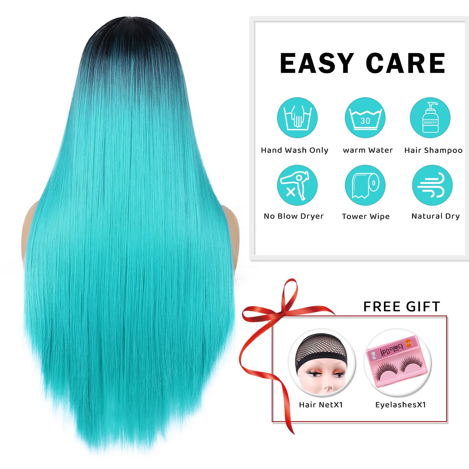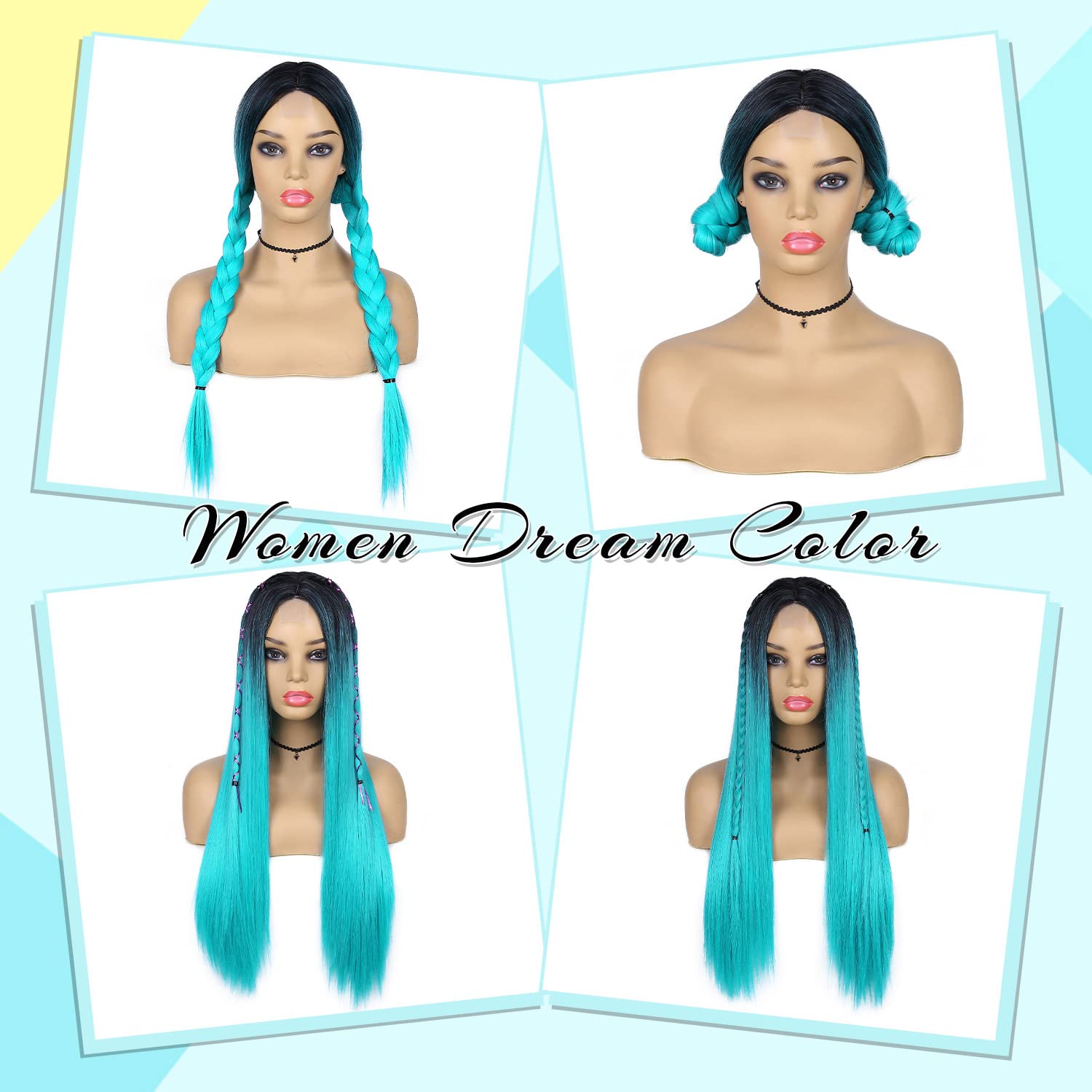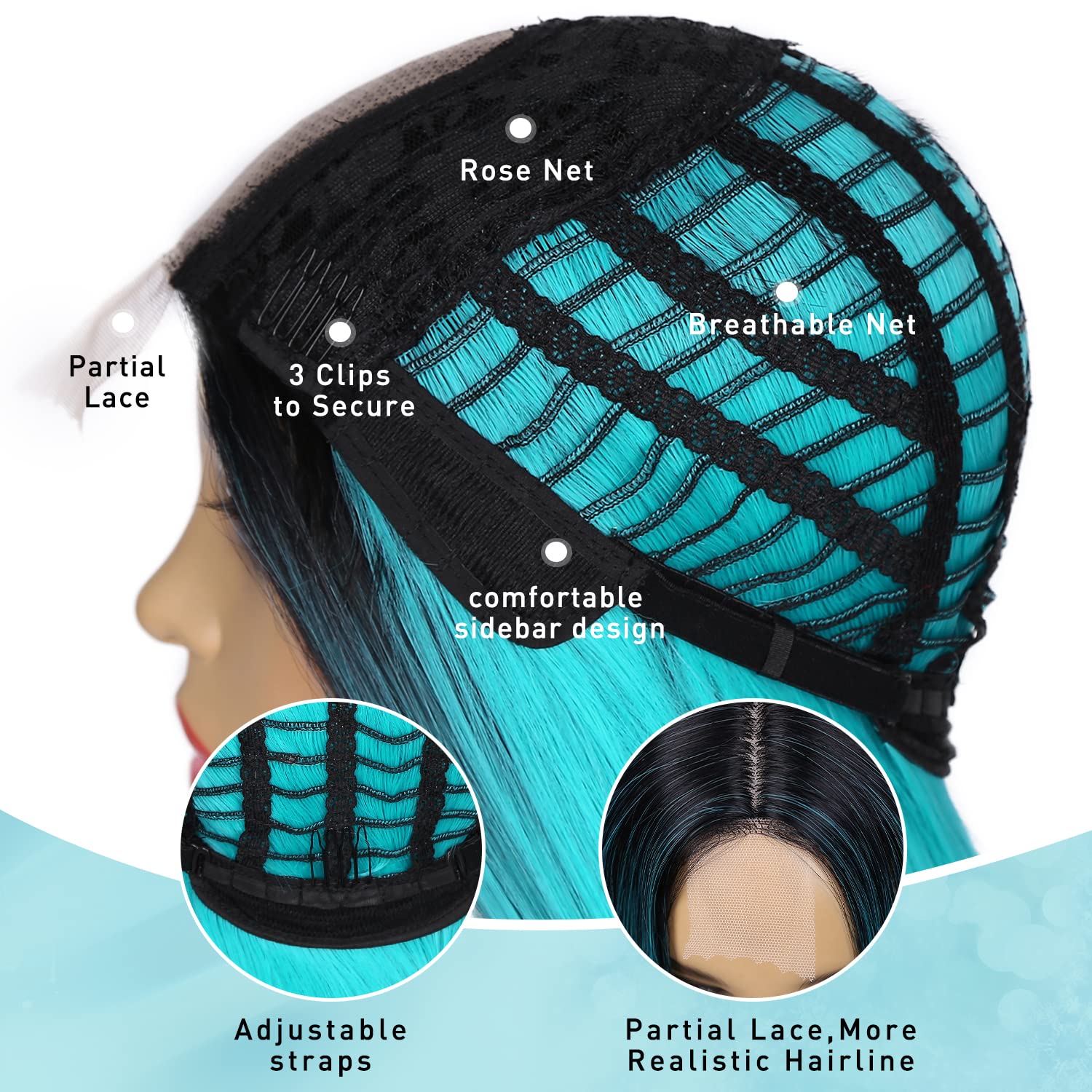 - 【Wig Cap】The straight turquoise wig is silky and soft,comfortable on the head. Medium cap size with 2 elastic adjustable bands fits for most women. It has 3 hair combs to secure and make sure wig stay firmly and never slide away.