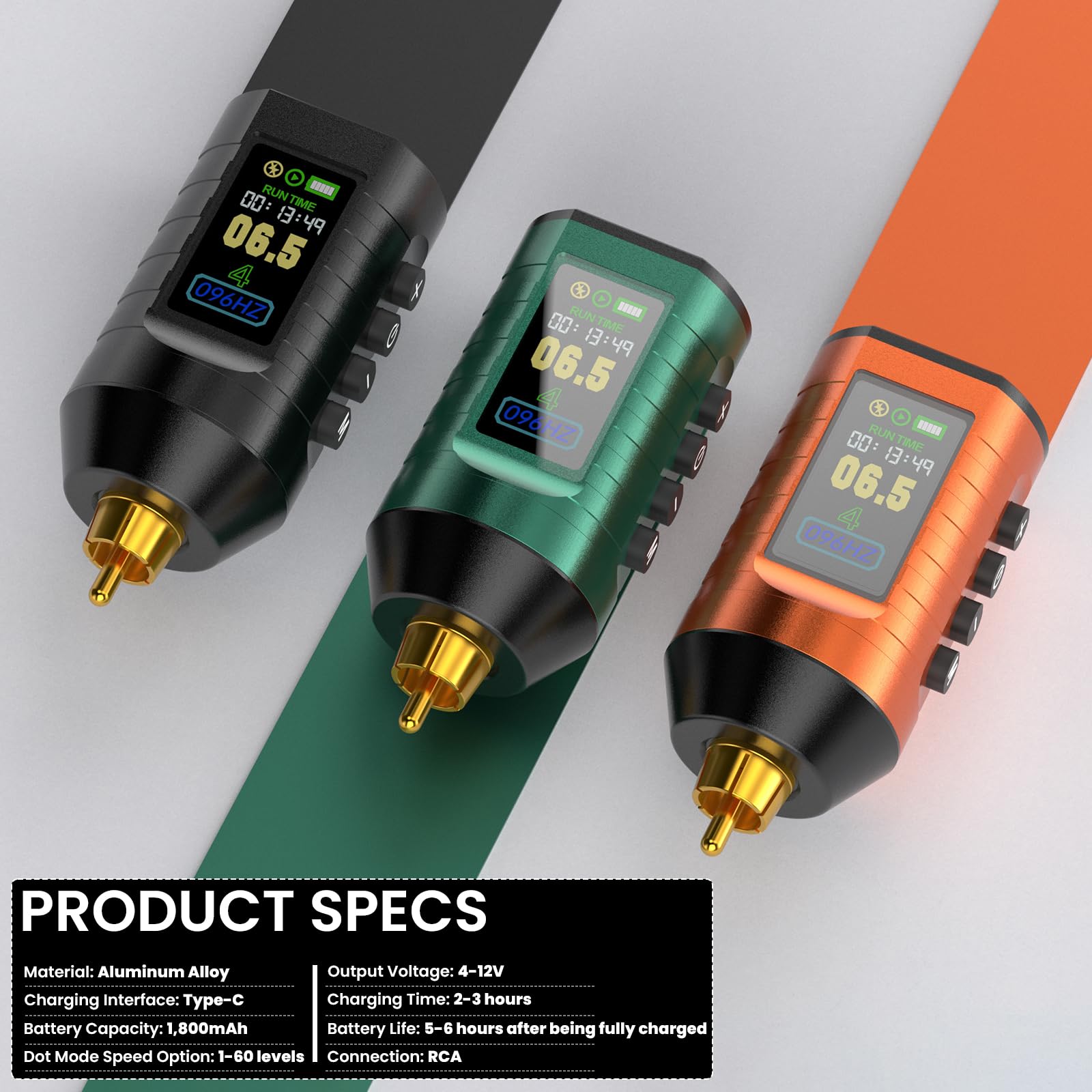 - [Reliable Battery Pack] The battery capacity of this power battery is 1,800mAh. It can work for 5-6 hours after being fully charged. The output voltage of this tattoo power supply is 4-12V, which can be accurate to 0.1V. It charges fully in 2-3 hours. The standard-size RCA connection is sturdy and durable, suitable for most tattoo gun with RCA interfaces on the market.