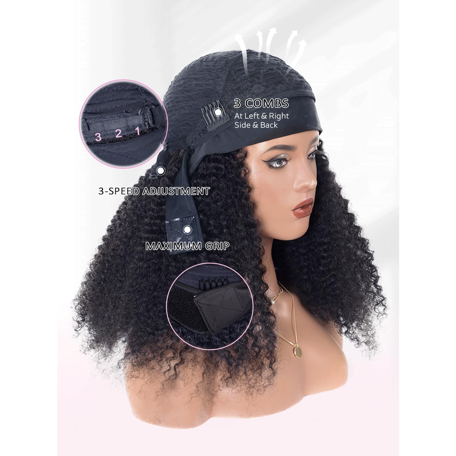 - Easy to Wear:Our Kinky Curly wear and go glueless Headband wig is designed for convenience and comfort. Simply place the wig on your head like a headband and adjust for a secure fit in seconds. It's perfect for busy mornings or last-minute styling.Install In Two Minutes At Home,Save Time And Money