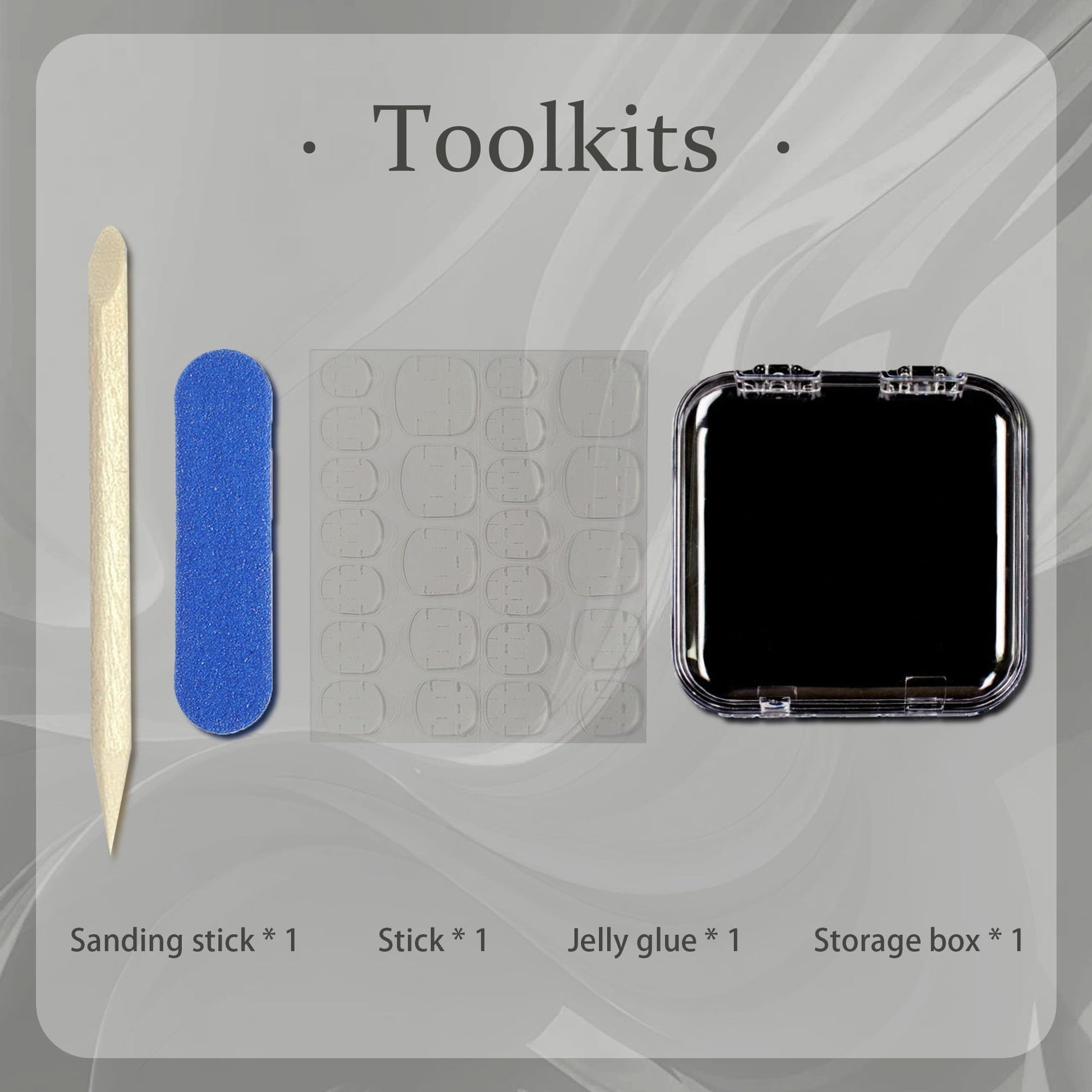 - Yabonica Packaging:10 pieces of professional Diy art nail art, a nail file, a small wooden stick, 24pcs jelly glue, a dark pink acrylic storage box, an outer packing box, weight about 38g, easy to carry as a present to friends and family
