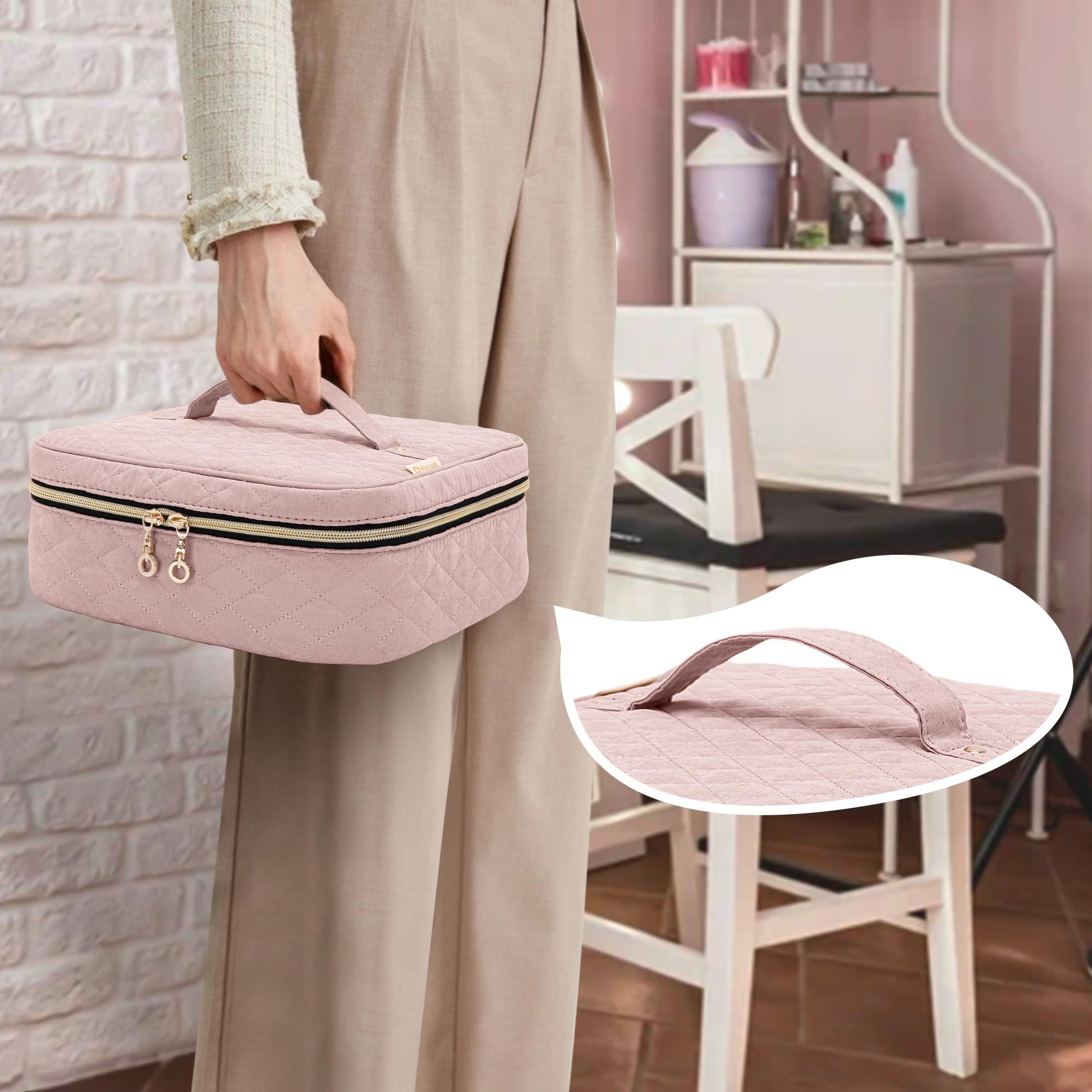 - GREAT DESIGN - Peach-skin fabric with supple touch, neat stitching and golden dual-way zipper add to its fashion and exquisiteness. Reinforced top handle is convenient for carrying your nail bottles everywhere stably.