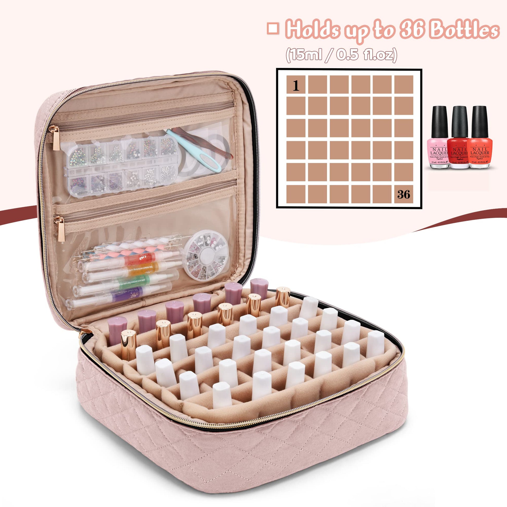 Yarwo Nail Polish Carrying Bag Holds 36 Bottles (15ml/0.5 fl.oz), Travel Storage Organizer for Nail Polish and Manicure Accessories, Dusty Rose (Bag Only)