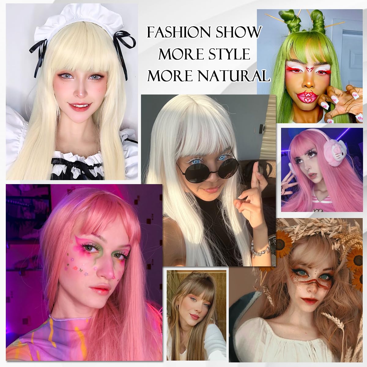 - Occasions: Goth wig suit all women of various skin tones. This long straight wig with bangs are perfect for daily use, cosplay, costume, party, gifts or theme performance. U will be the beauty focus! More pretty, confidence, charming, attractive.