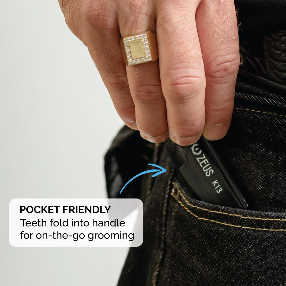 - FOLDING MUSTACHE COMB (3 PACK): The ZEUS Folding Mustache Comb is the perfect tool for taming mustaches of any shape and size, essential for beard and mustache grooming on the go.