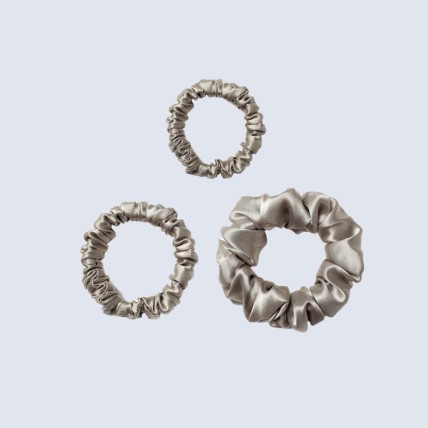 ZIMASILK 100% Mulberry Silk Hair Scrunchies-Standard, Small, Mini-Best for Women and Girls’Hair 19 Momme Elastic Hair Bands for Ponytail Holder Gentle And No hurt (3 Sizes, Taupe)