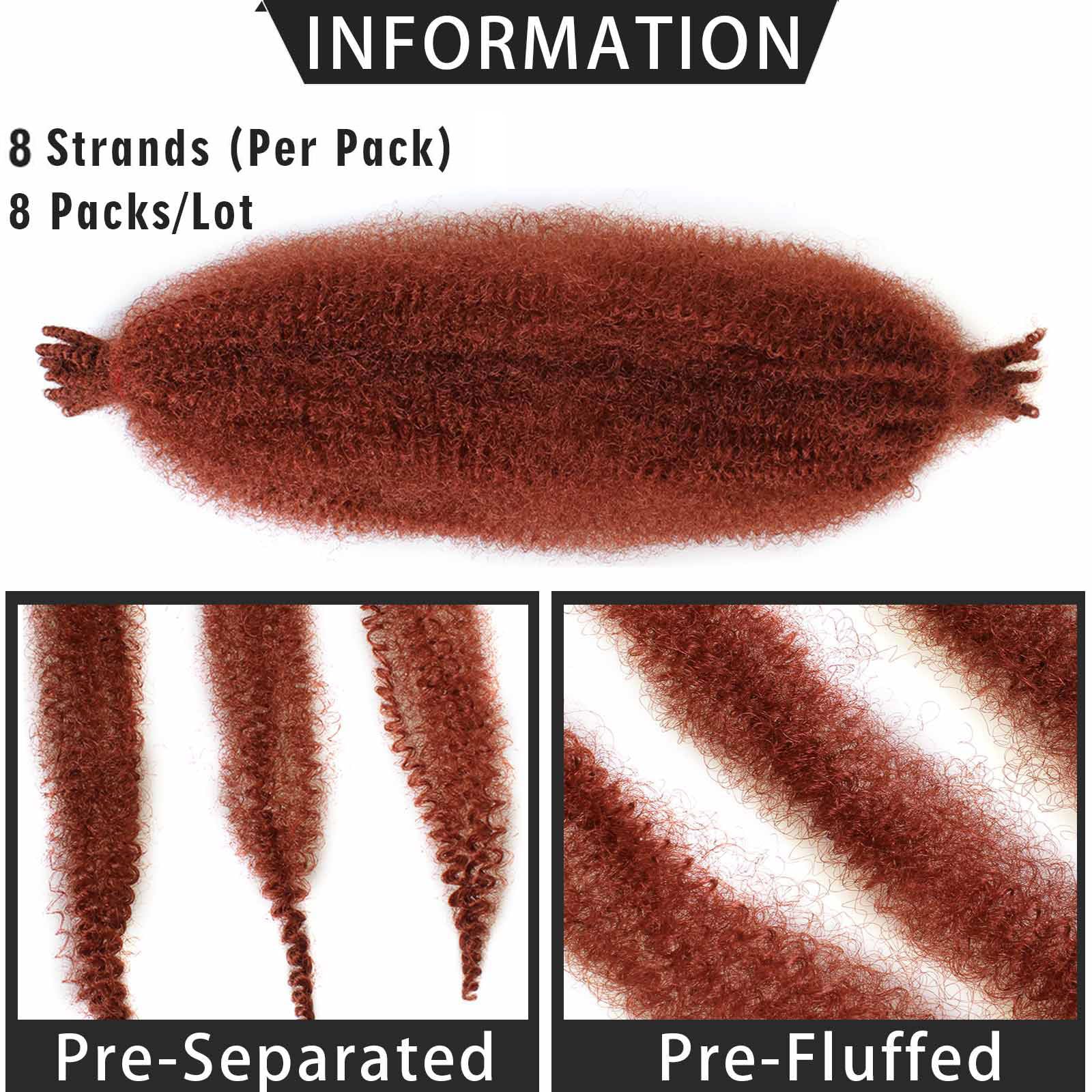 ZRQ 8 Packs Black Springy Afro Twist Hair 30 Inch Pre-Separated Spring Twist Marley Crochet Braiding Hair For Distressed Soft Locs Synthetic Hair Extension For Black Women 8 Strands/Pack (1B#)
