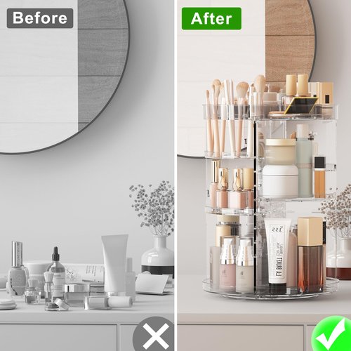 Lulltou 360 Rotating Makeup Organizer, Spinning Skincare Organizers with Slot Top, Cosmetic Storage Shelf with 8 Adjustable Layers, Revolving Perfume Organizer for Vanity Bathroom Countertop Bedroom